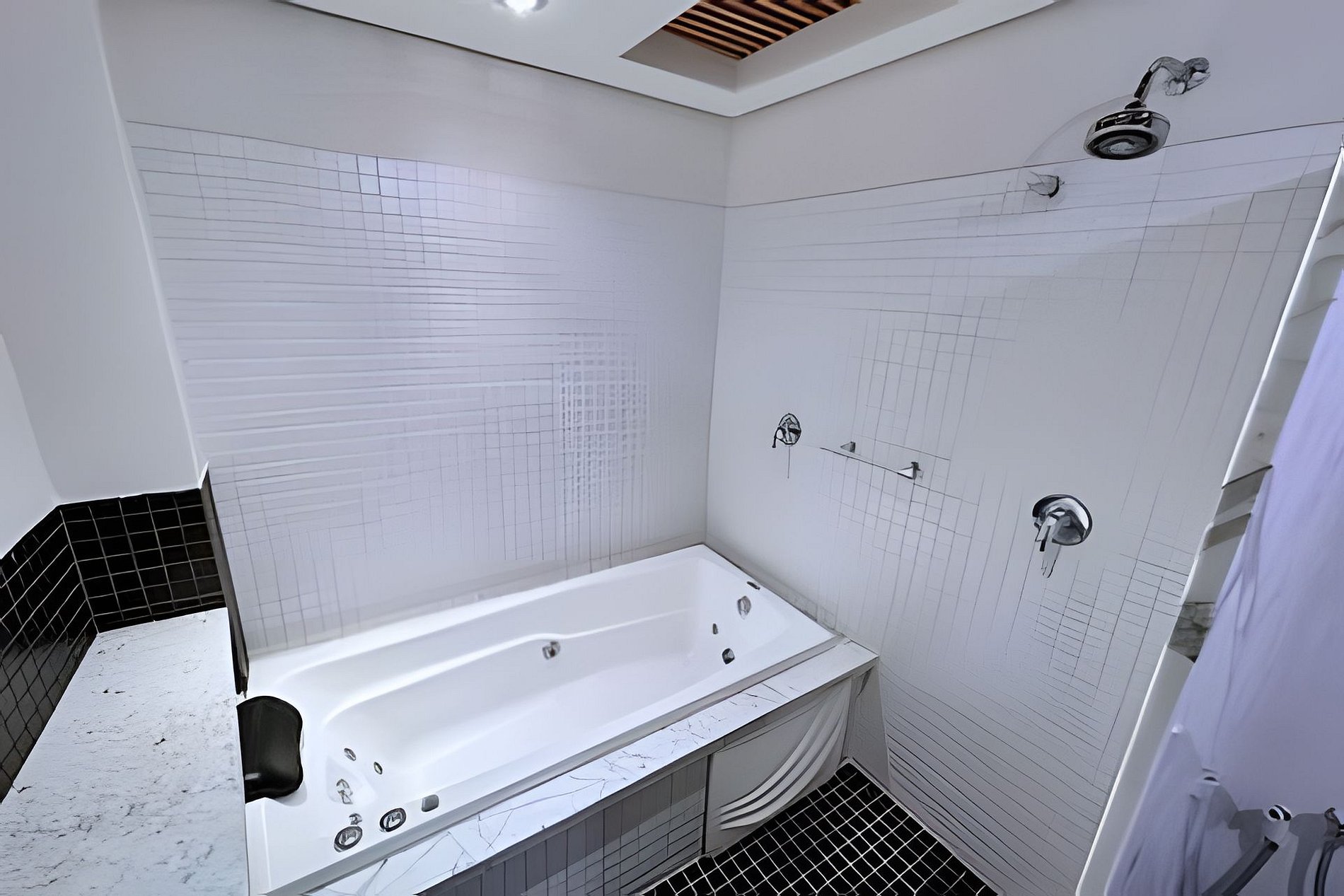 === Importante notar que a banheira que aparece nas fotos é uma banheira de imersão. O sistema de hidromassagem não está funcionando atualmente.