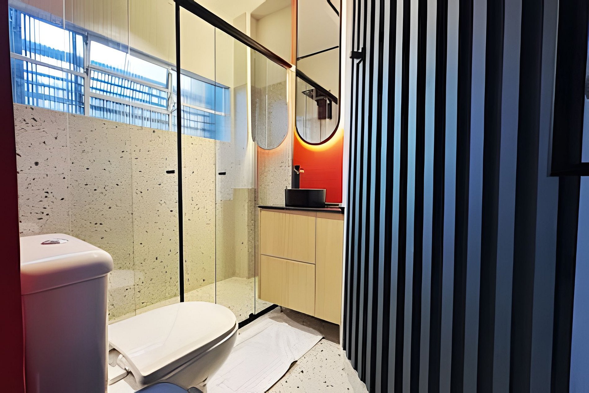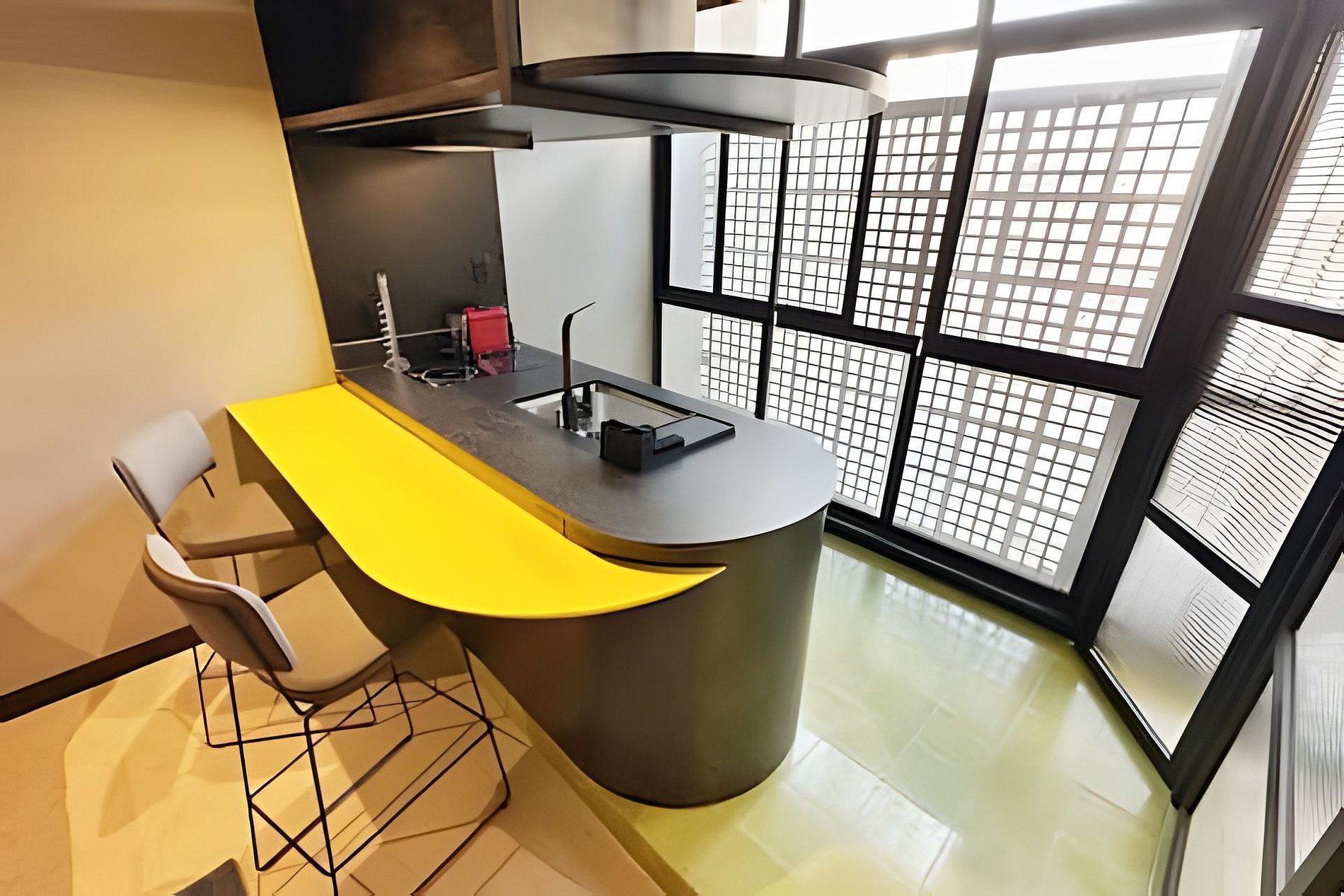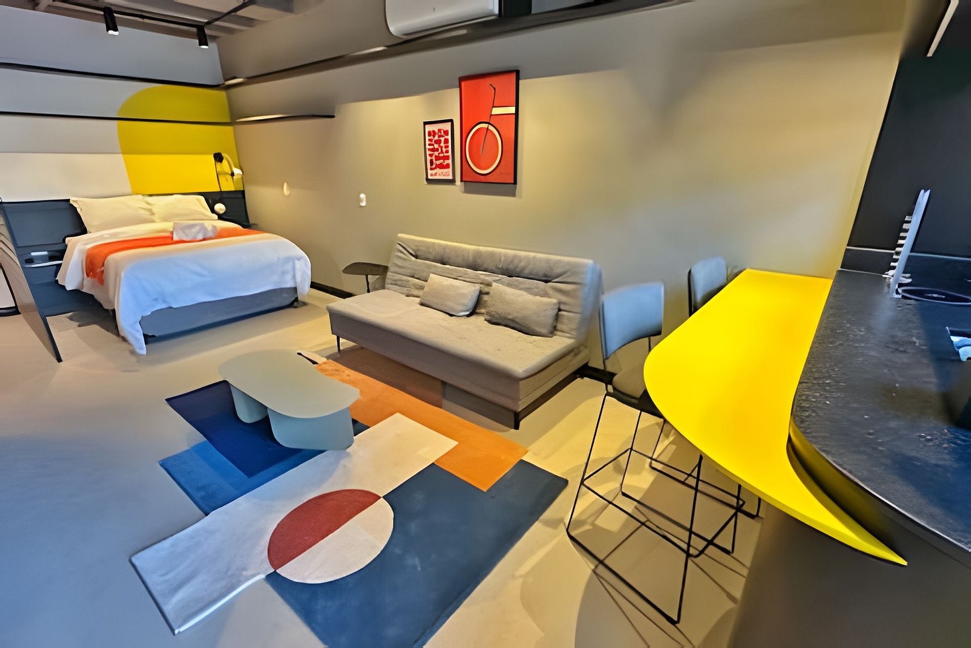 "Entre Curvas e Cores" é uma celebração da arquitetura modernista brasileira, onde a sensualidade se encontra com a funcionalidade. Inspirada na obra de Lúcio Costa e na estética do Edifício Copan, esta suíte convida os hóspedes a explorar um espaço que é tanto um refúgio quanto uma experiência sensorial. Lúcio Costa foi o que trouxe uma releitura do Bauhaus na arquitetura com formas e cores, trouxemos o BauHaus com essa temática mas dar vida a suíte.