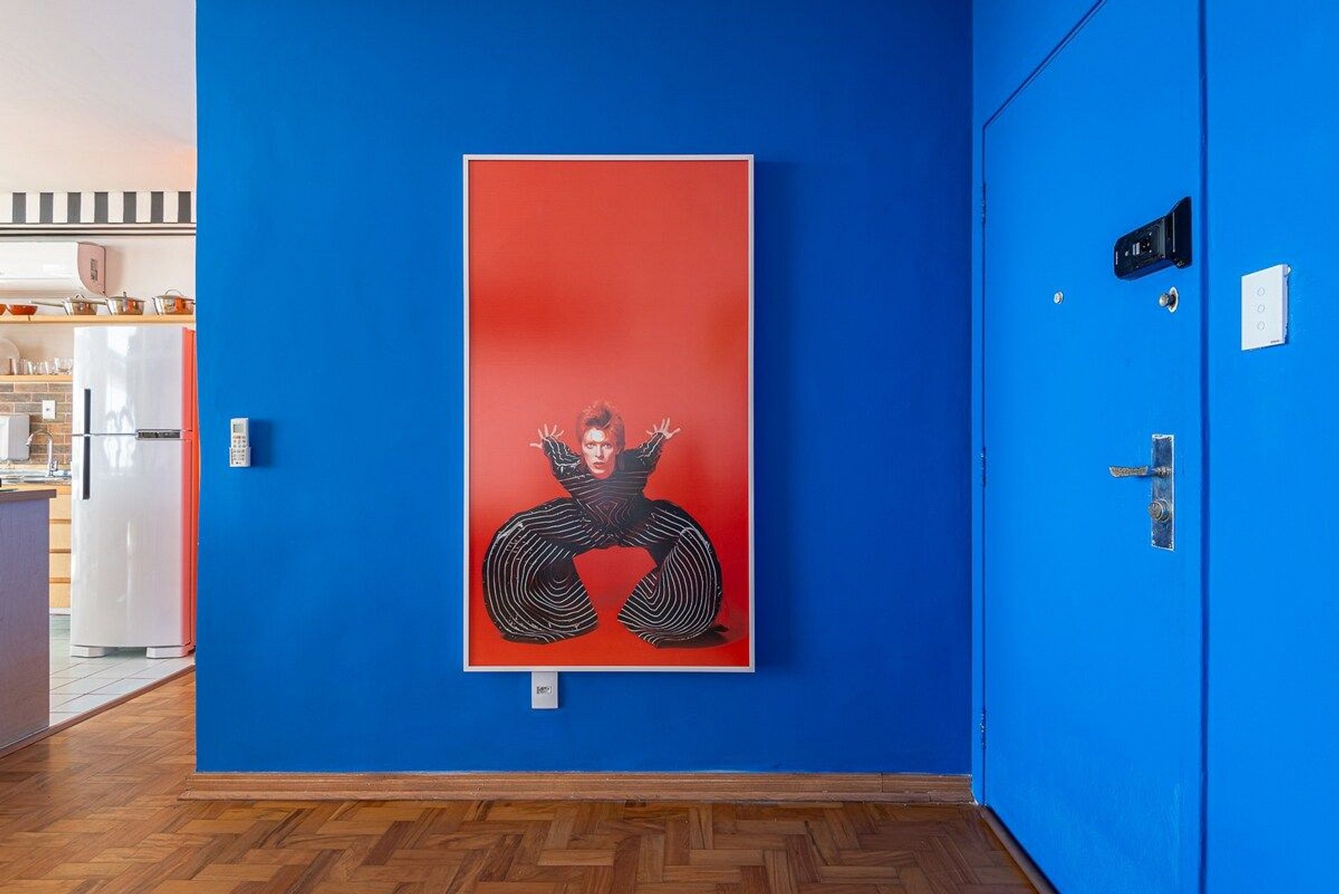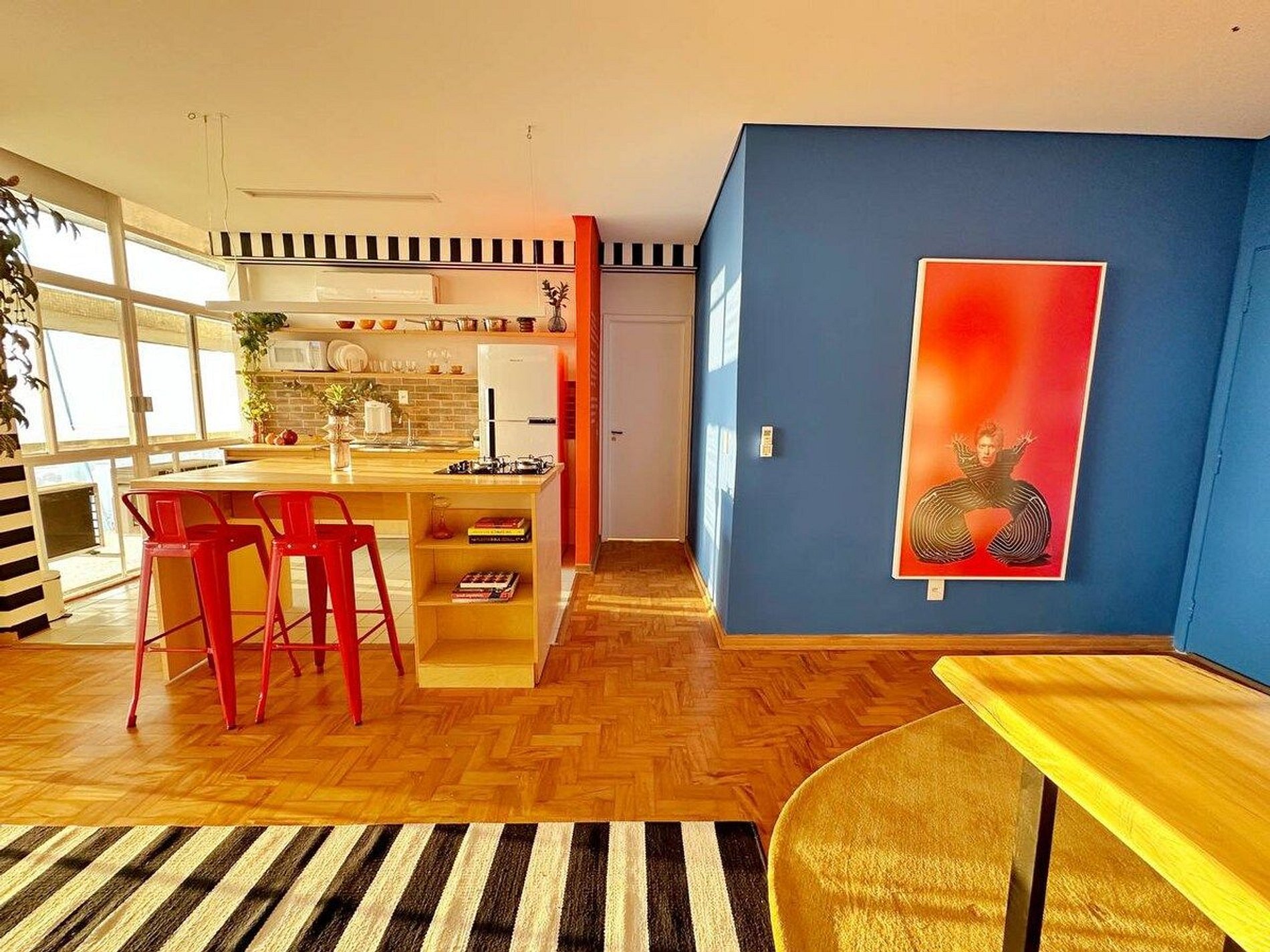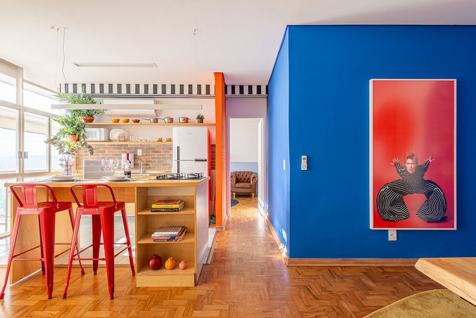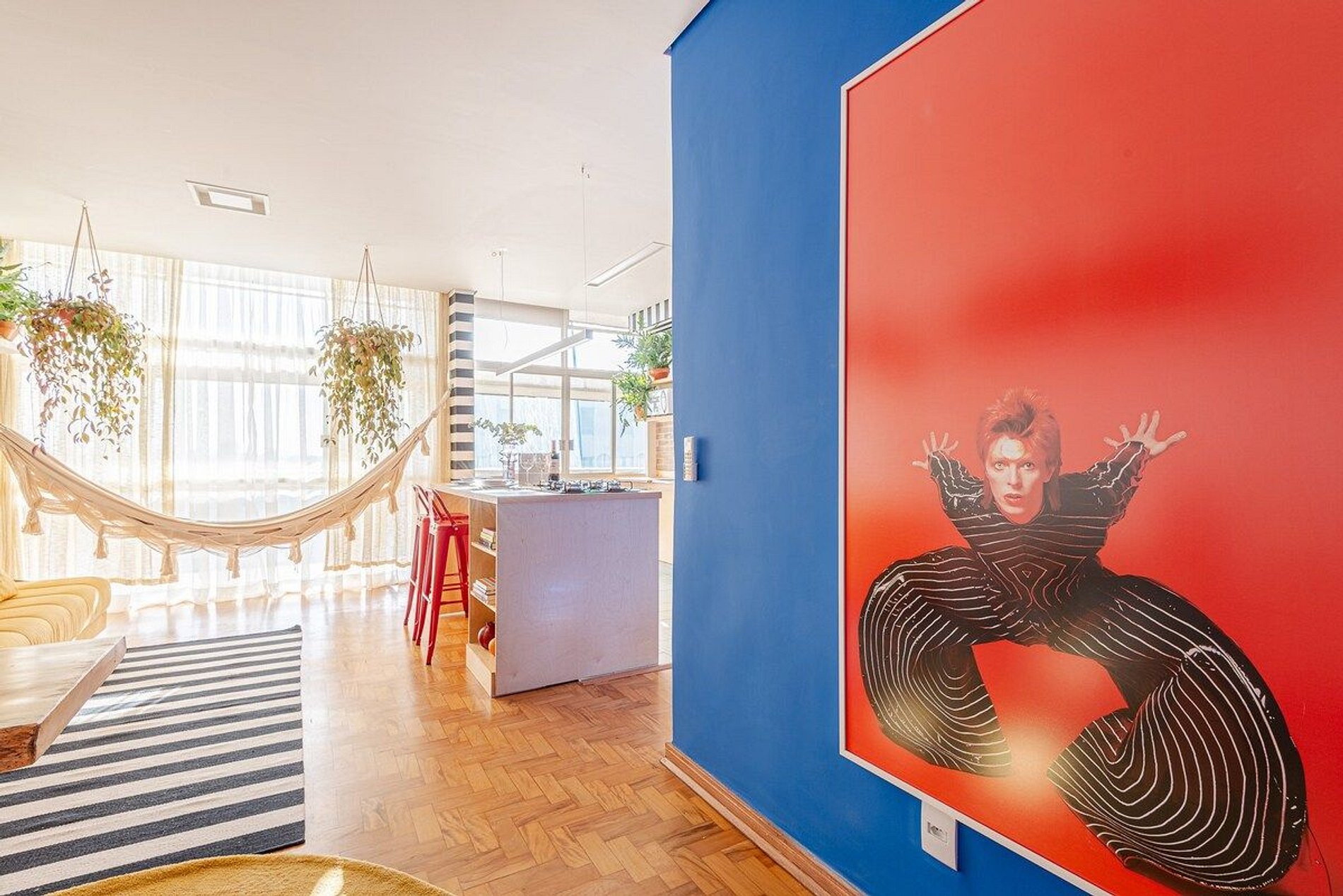 O apartamento é desenhado em homenagem ao astro do rock David Bowie e está localizado no Edifício Copan. Projeto de Yanaina interiores