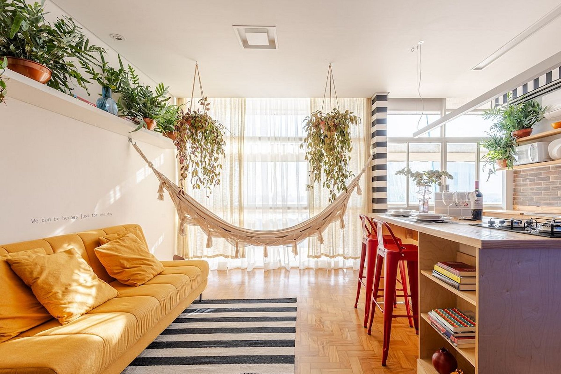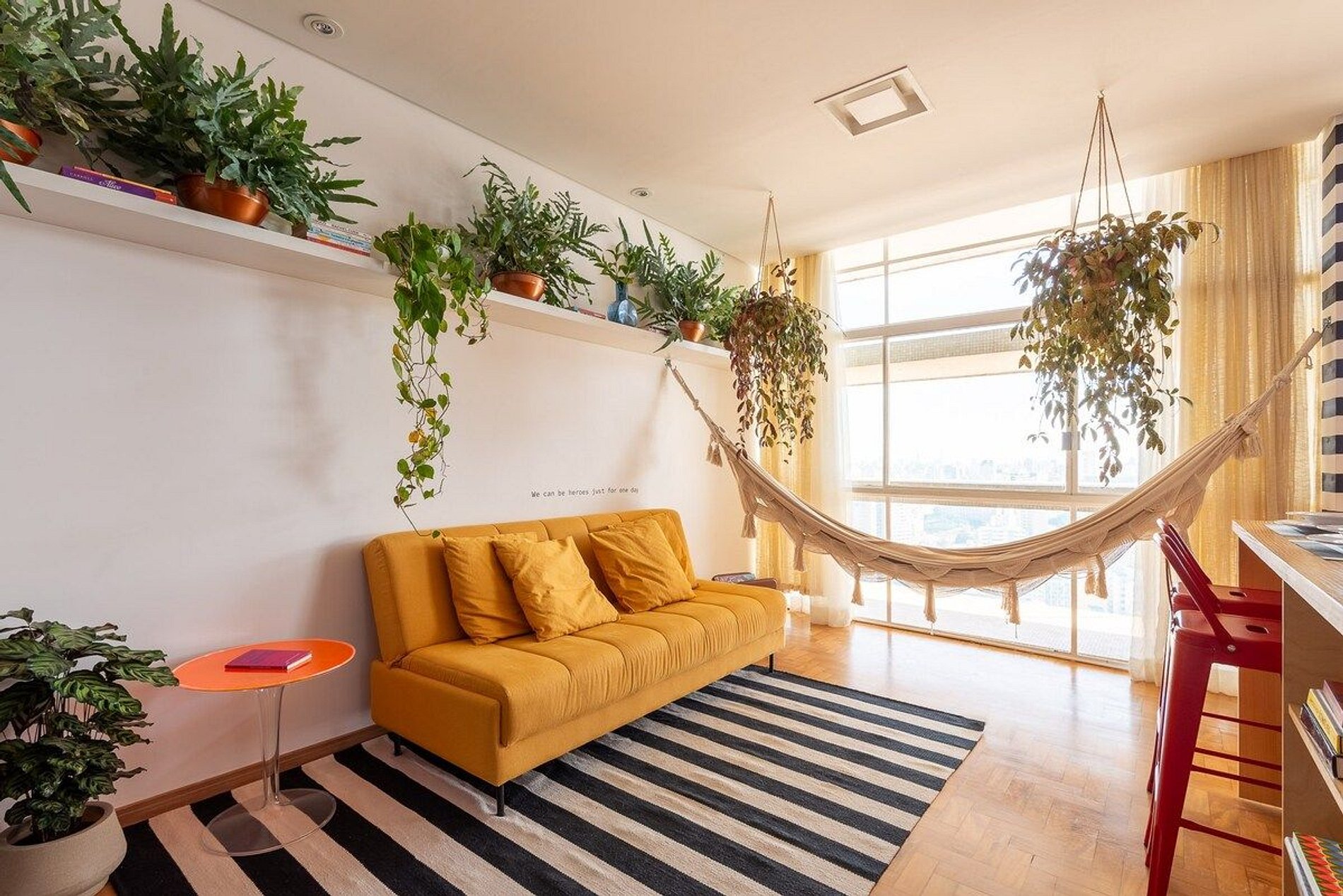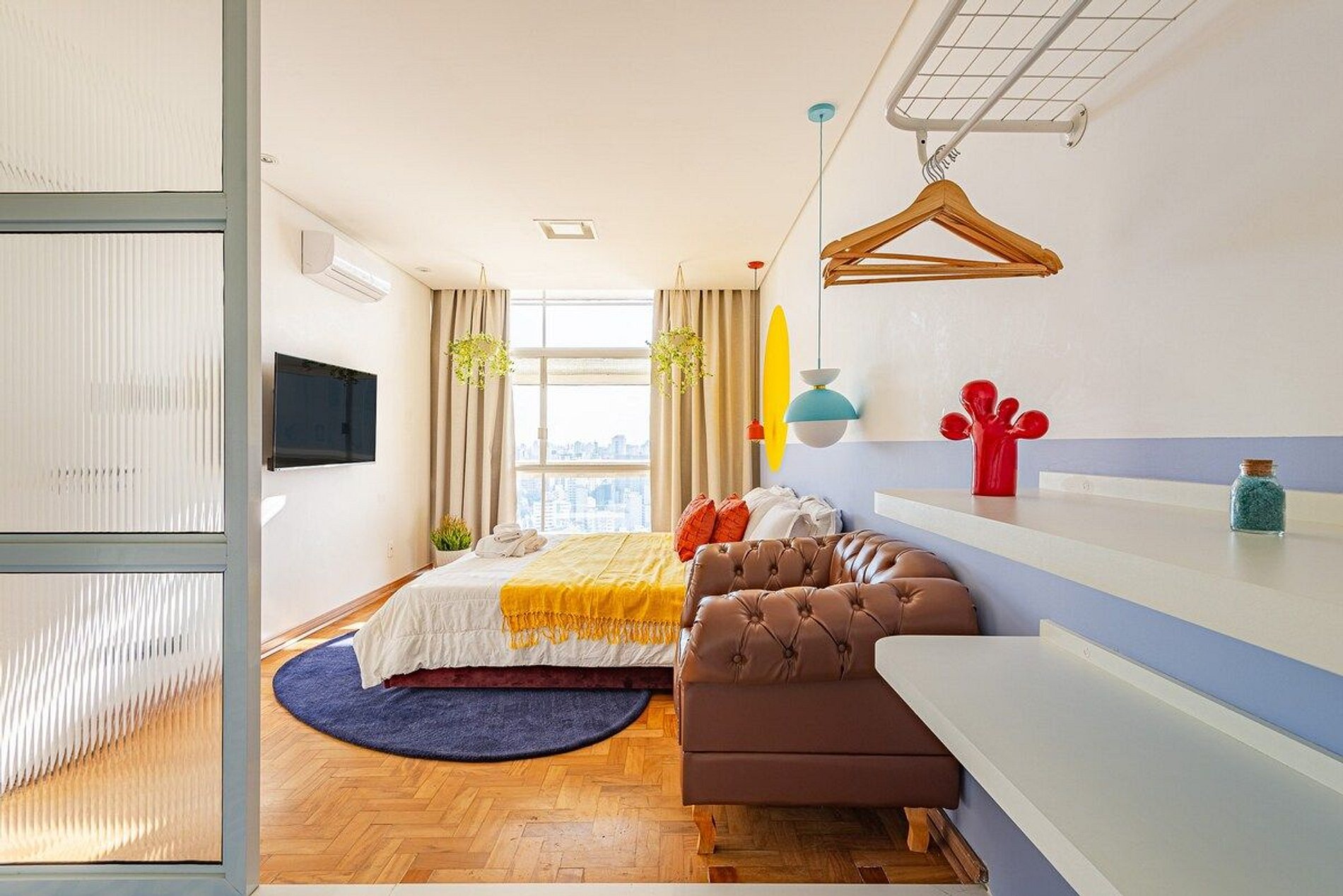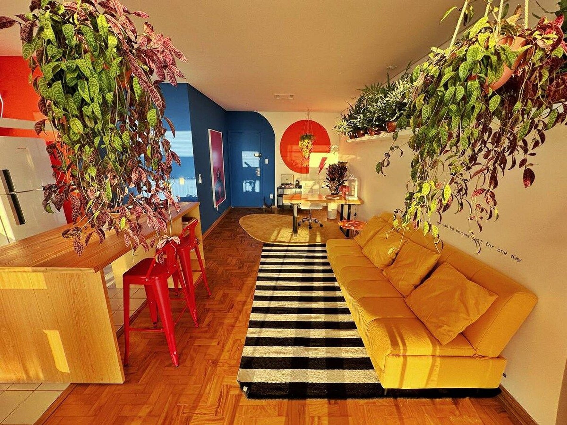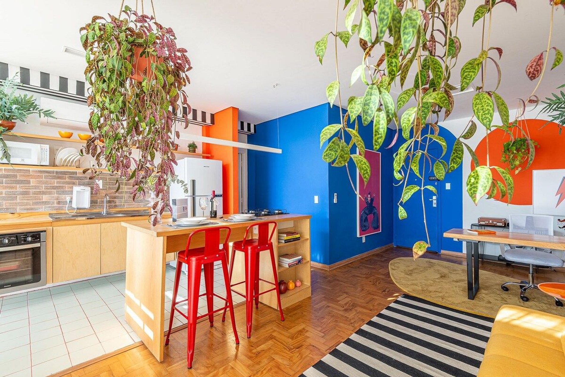O apartamento é desenhado em homenagem ao astro do rock David Bowie e está localizado no Edifício Copan. Projeto de Yanaina interiores