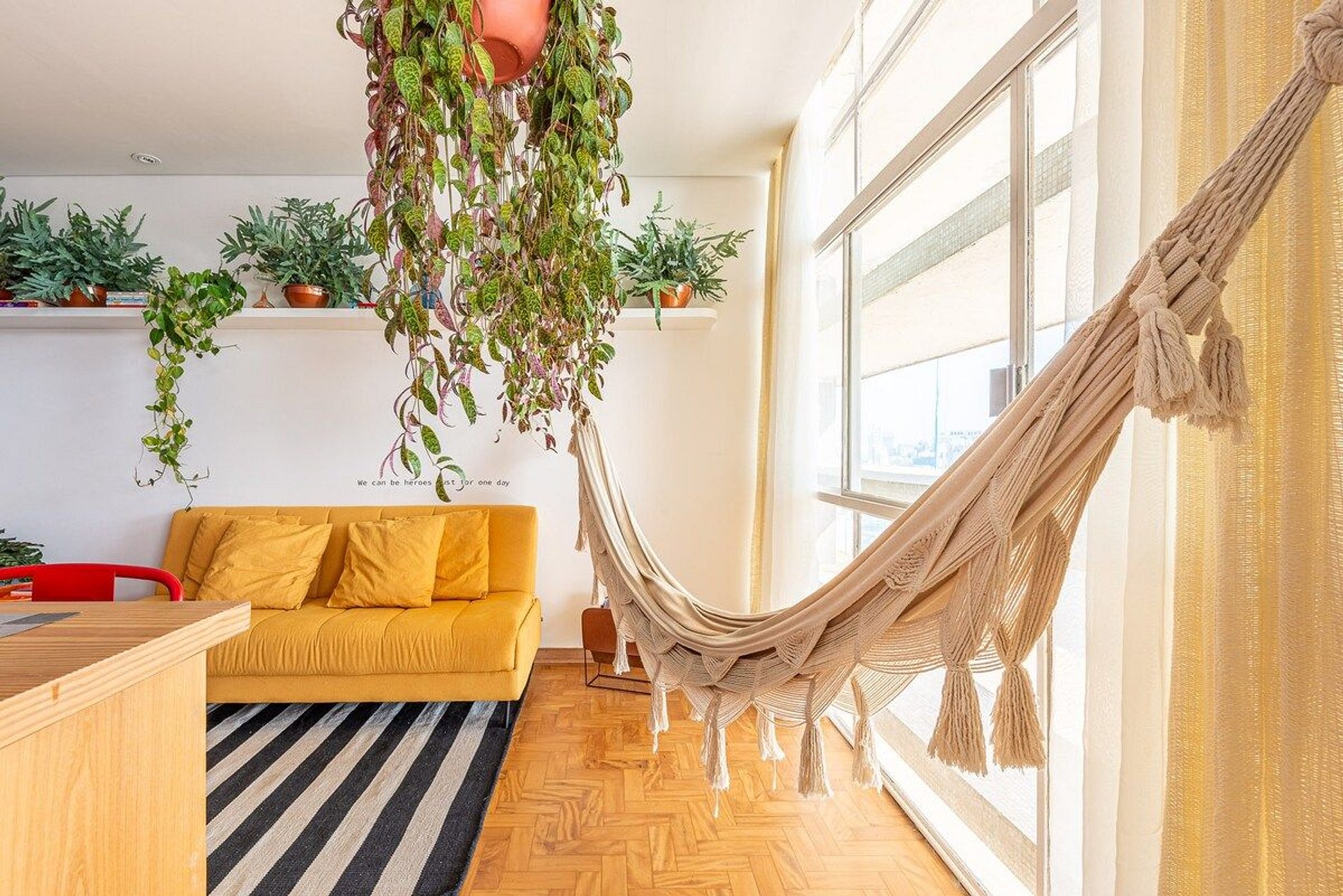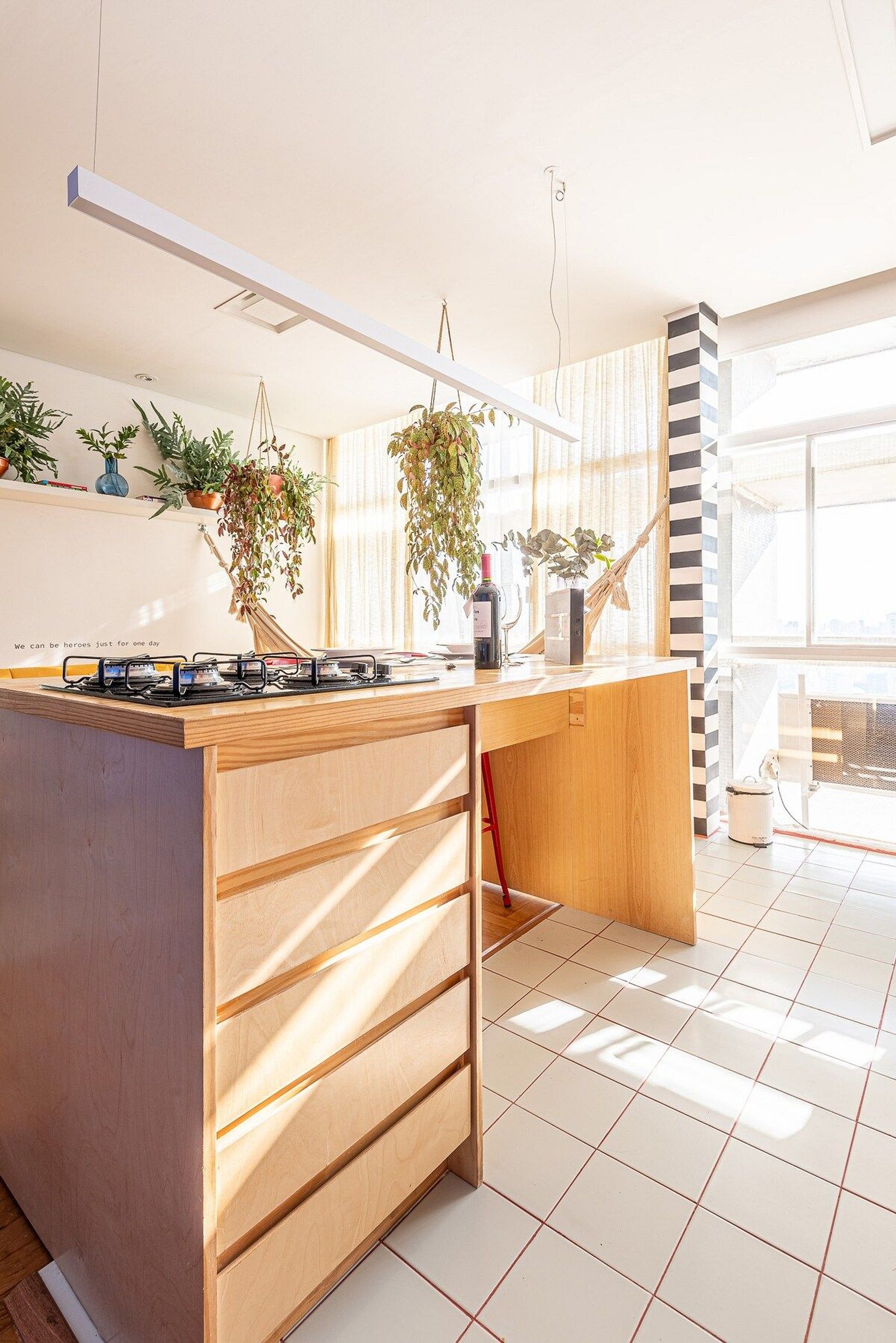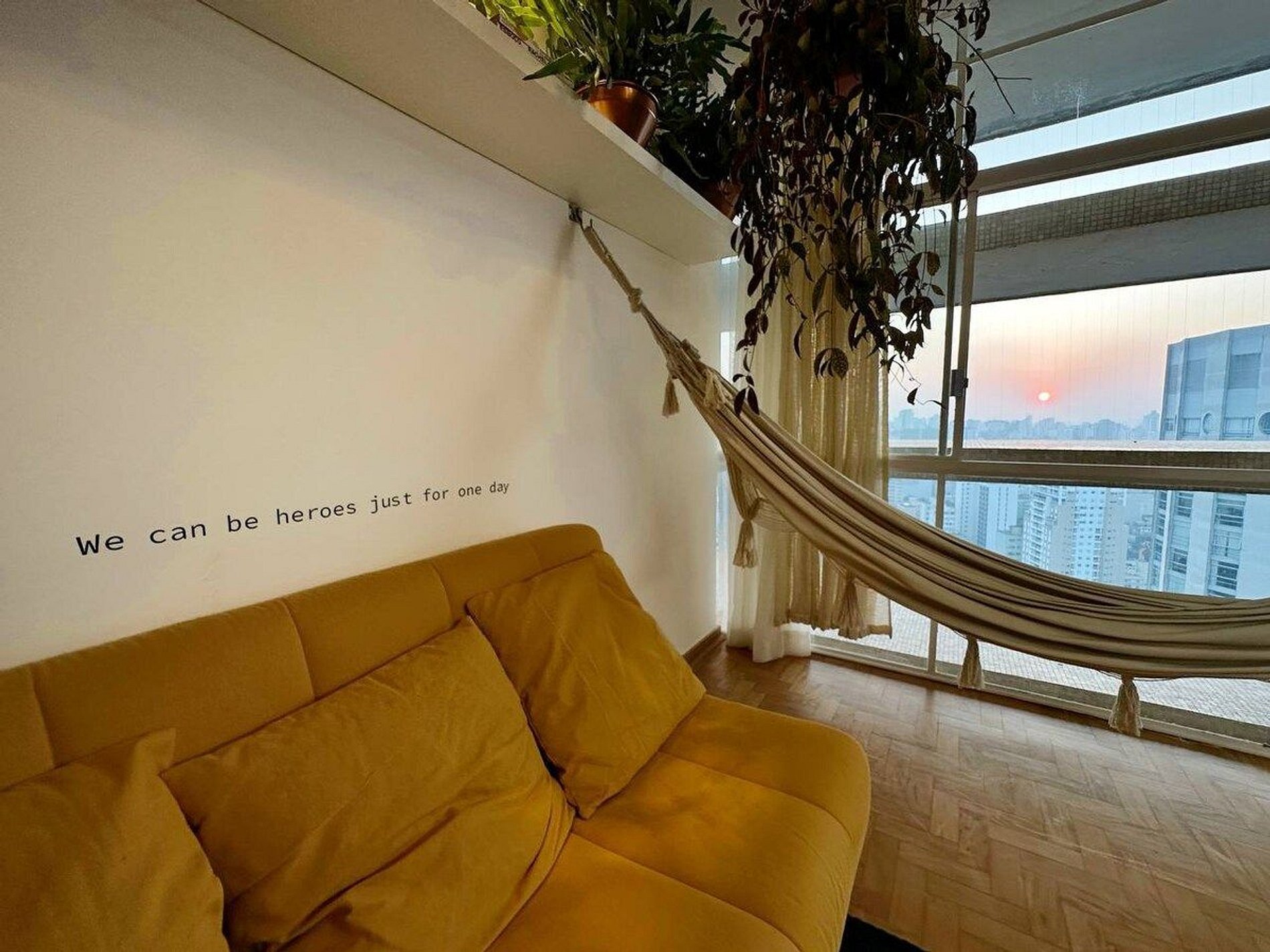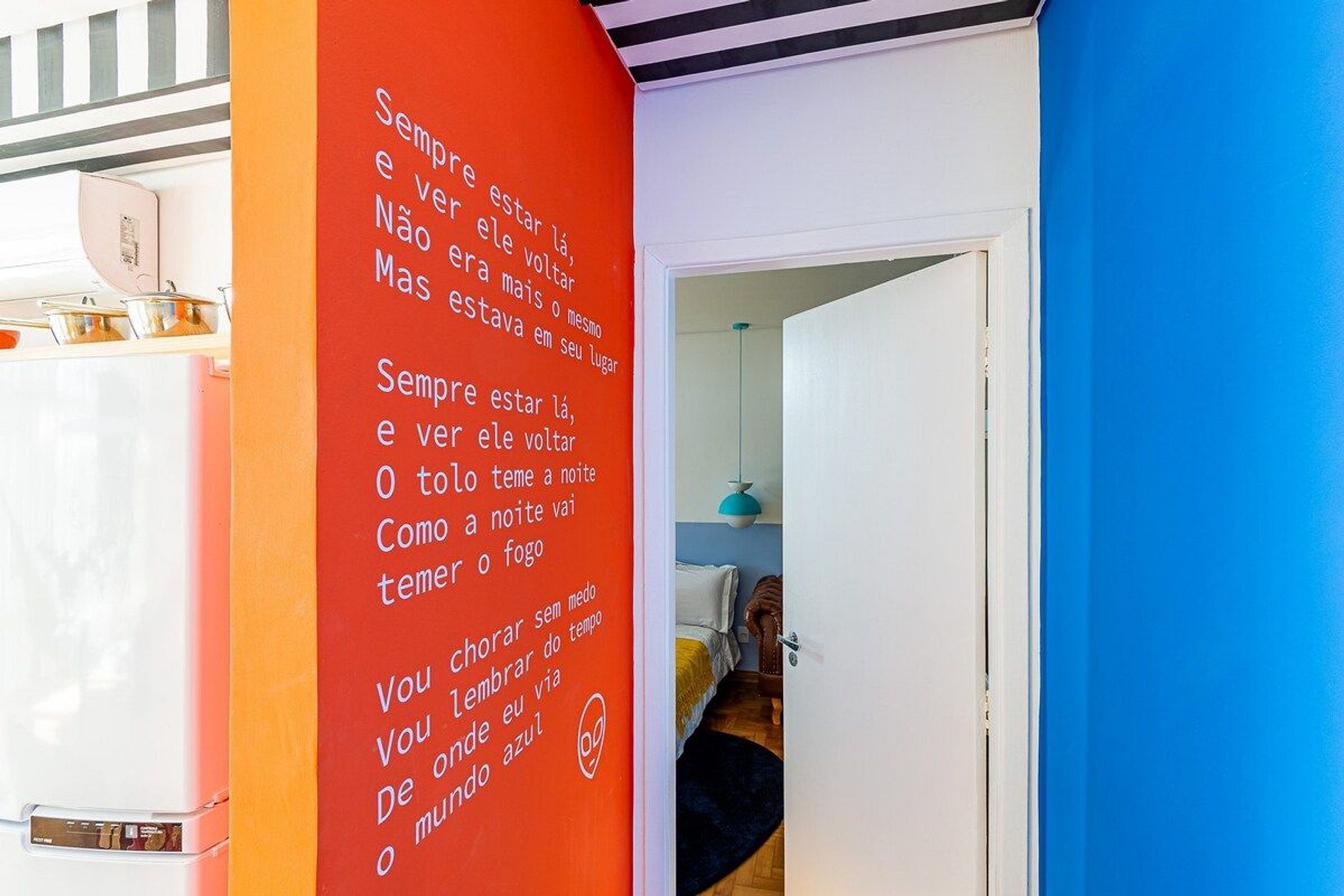 O apartamento é desenhado em homenagem ao astro do rock David Bowie e está localizado no Edifício Copan. Projeto de Yanaina interiores