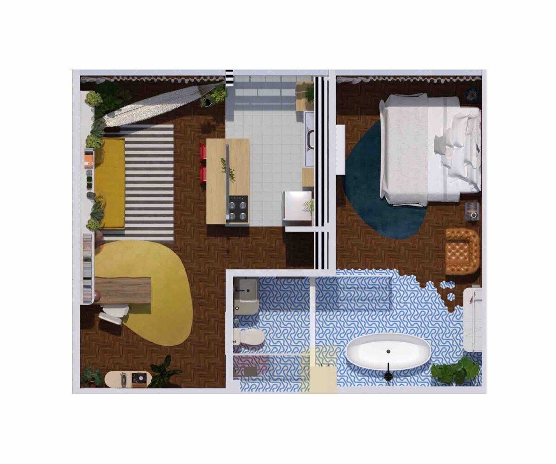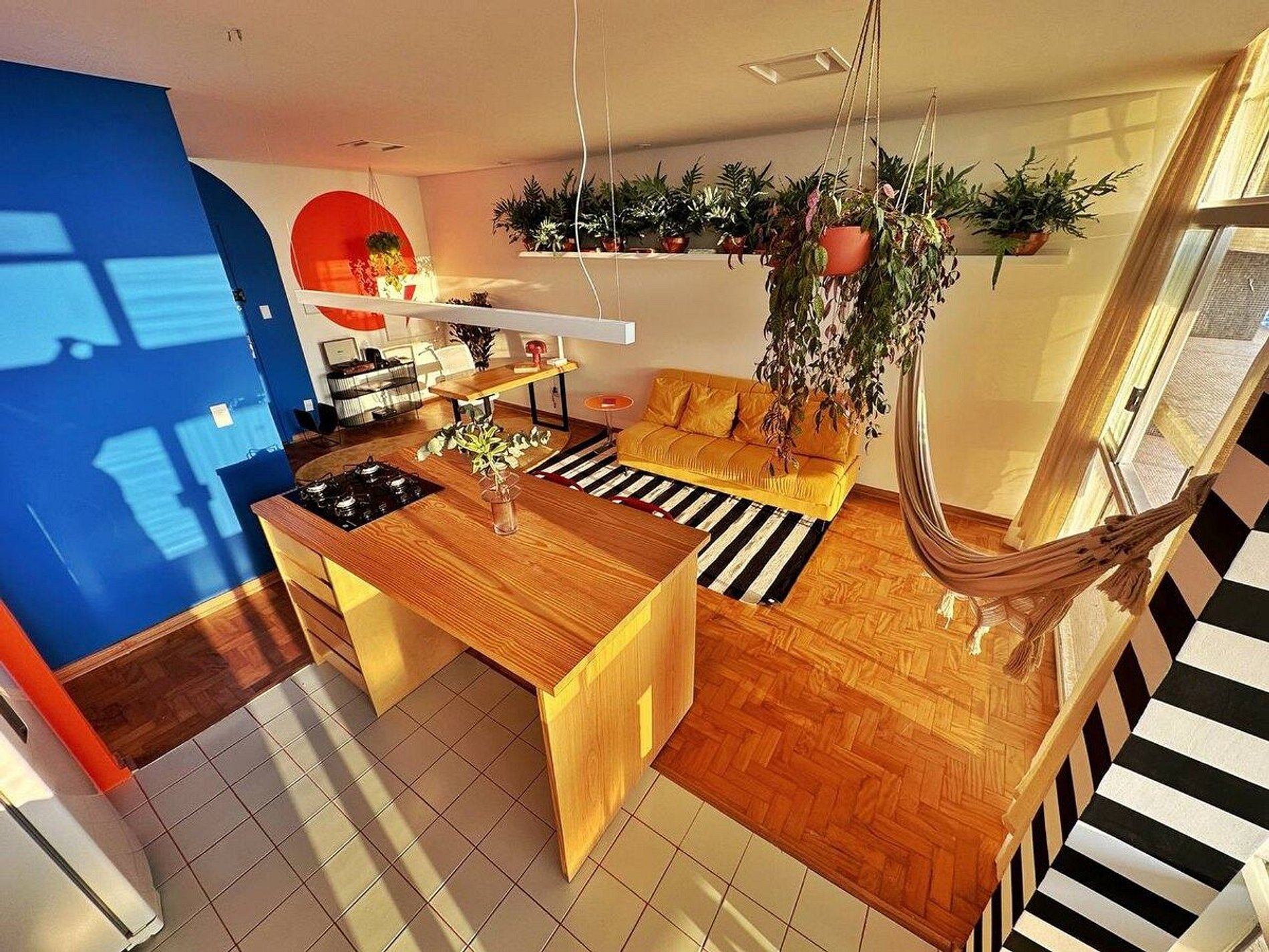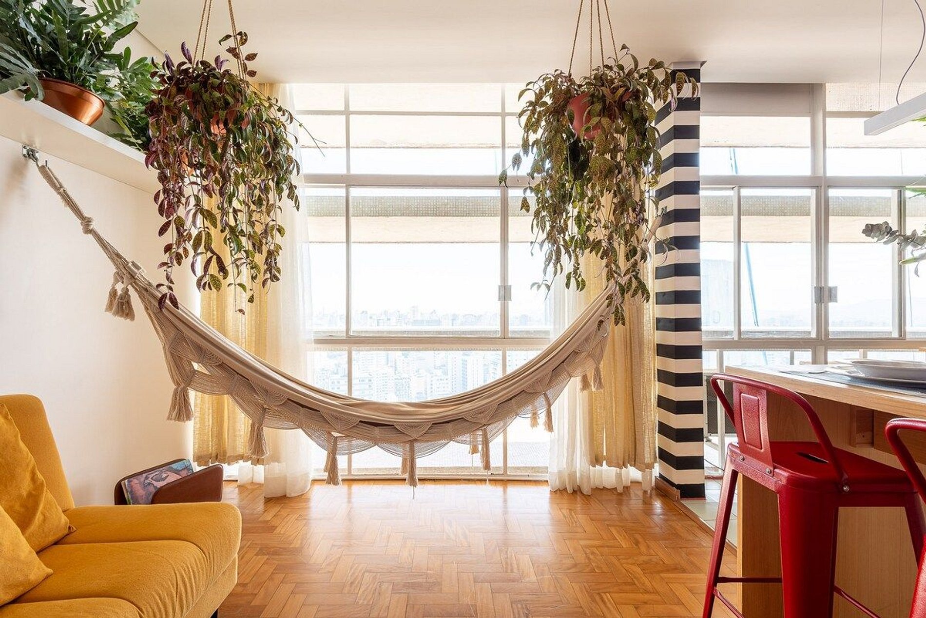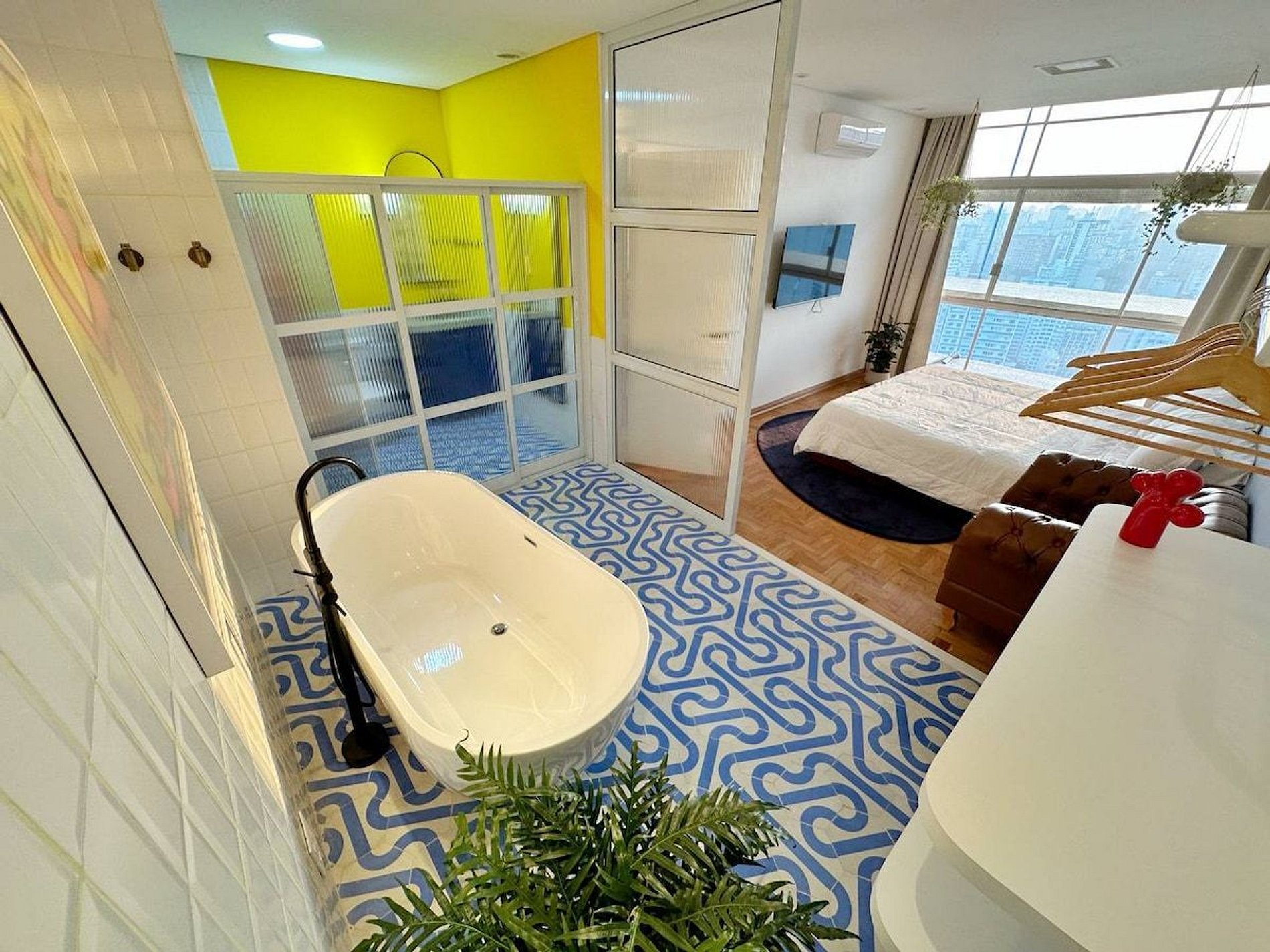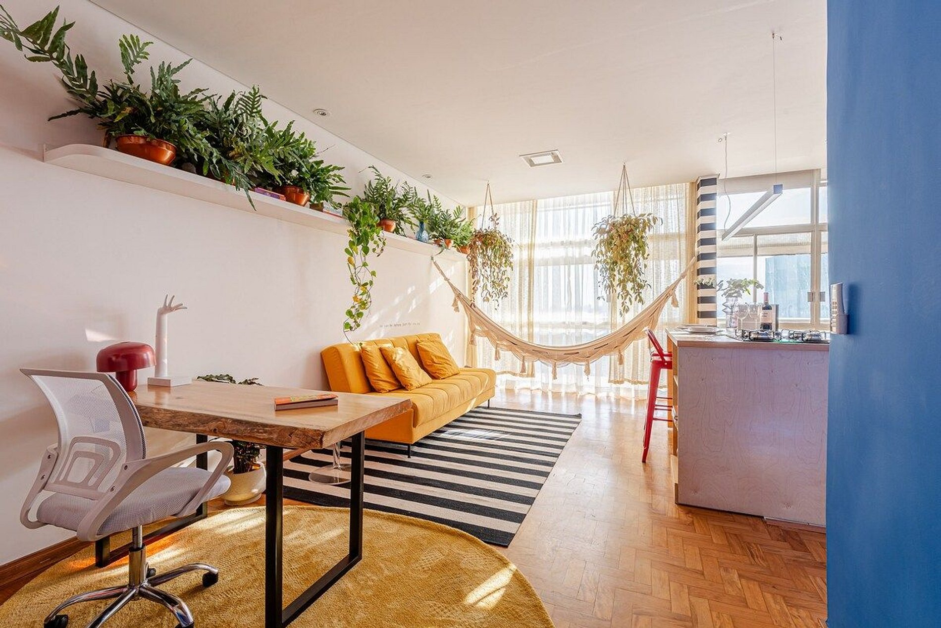 O apartamento é desenhado em homenagem ao astro do rock David Bowie e está localizado no Edifício Copan. Projeto de Yanaina interiores