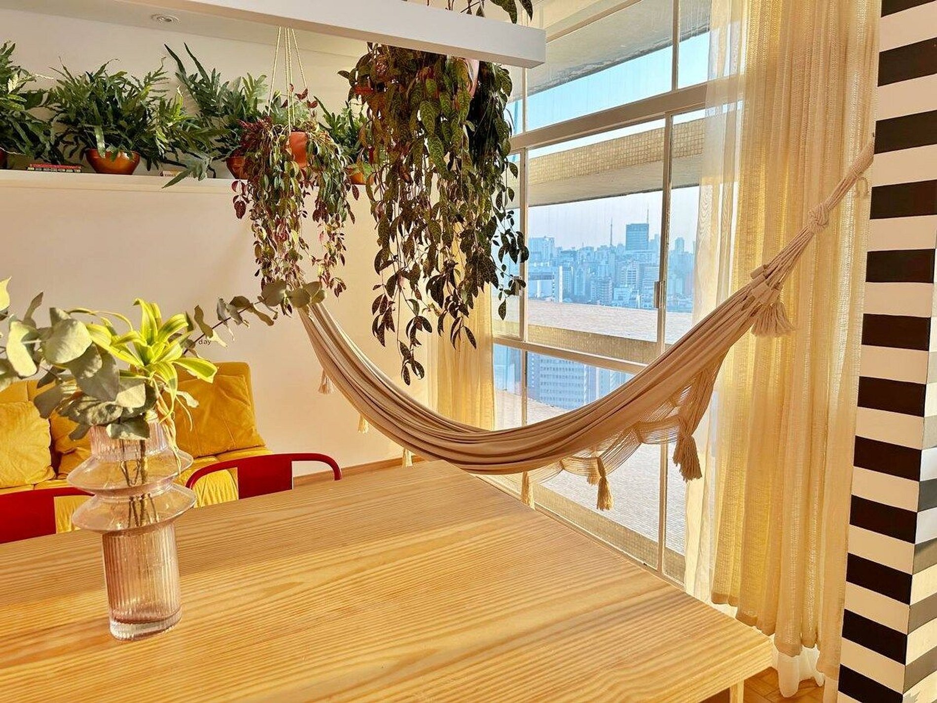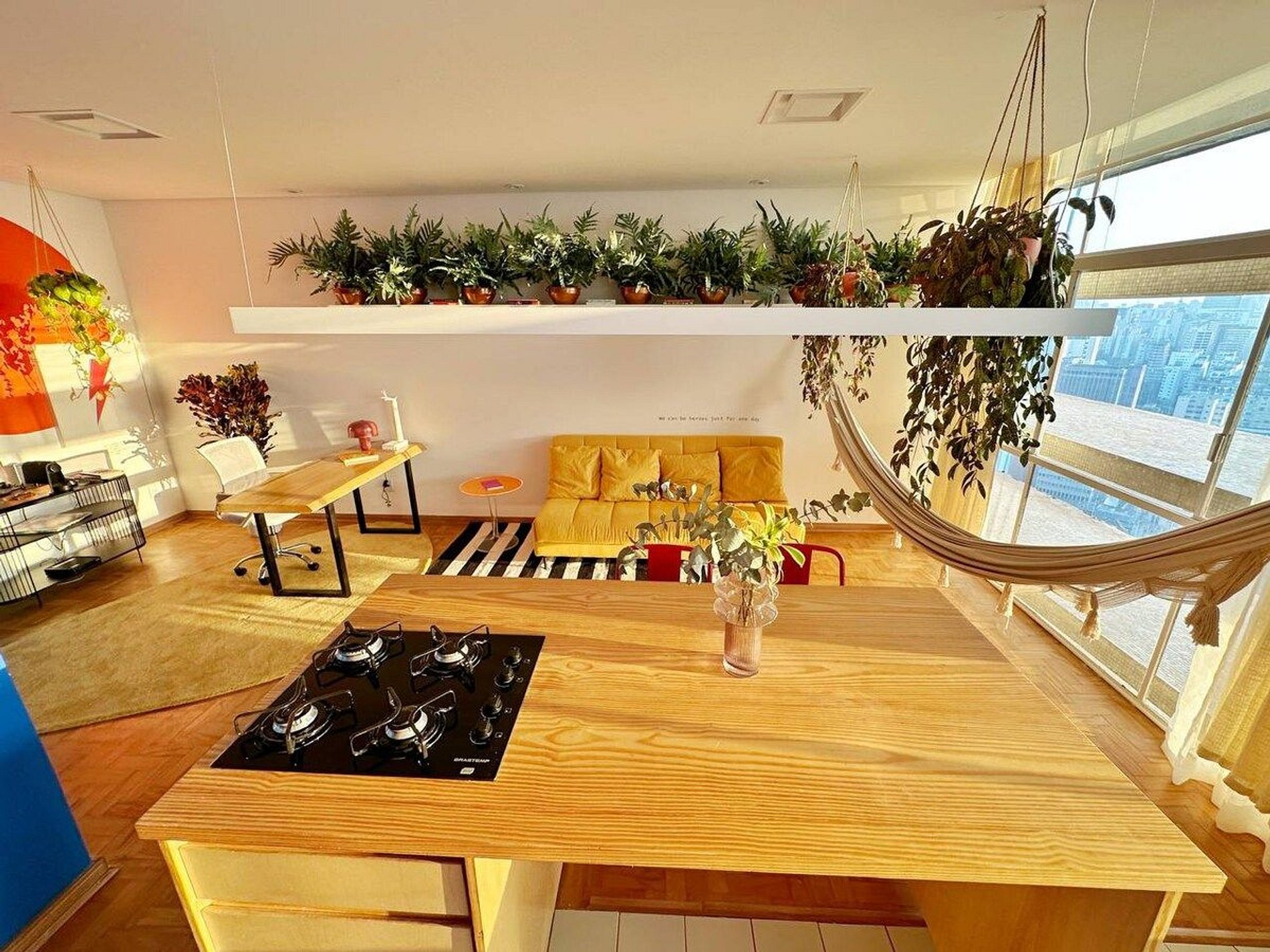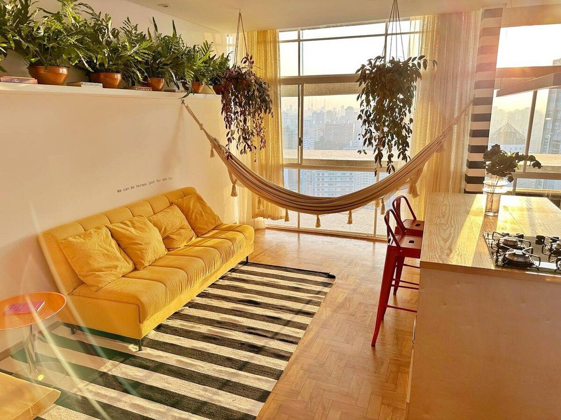 Apartamento de um dormitório incrível no 28º andar do Copan, com um pôr do sol impressionante durante todo o ano. Cama King Size, Ar Condicionado nos dois ambientes, Closet, espaço para trabalho com internet 300MBPs, rede de descanso, cozinha completa e espaçosa, automatizada com sistema Amazon/Alexa. O apartamento mais completo que você pode encontrar no Copan