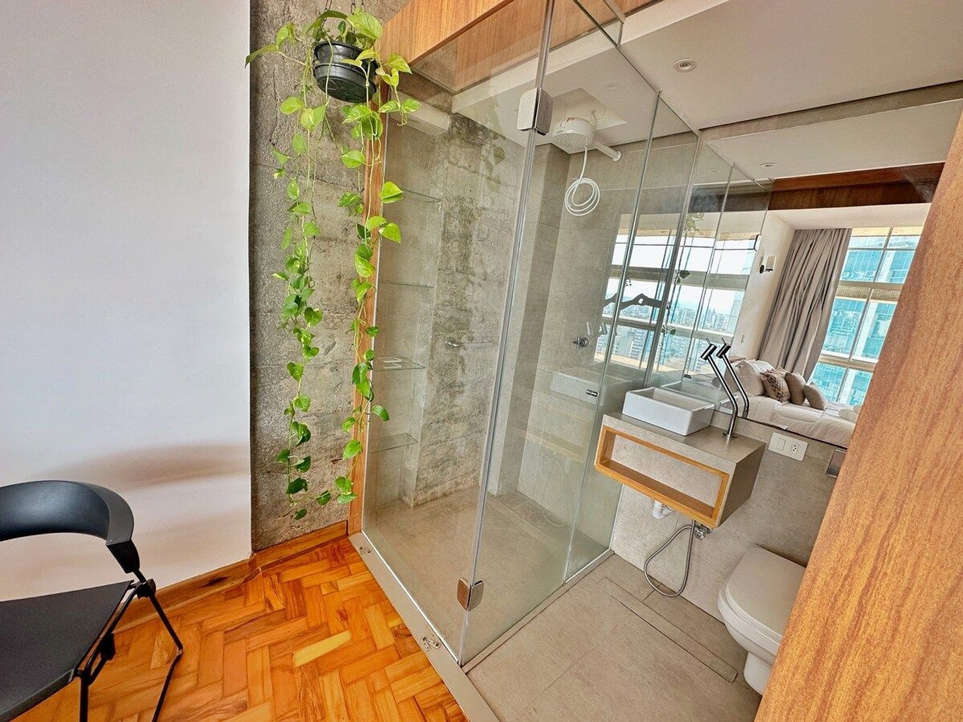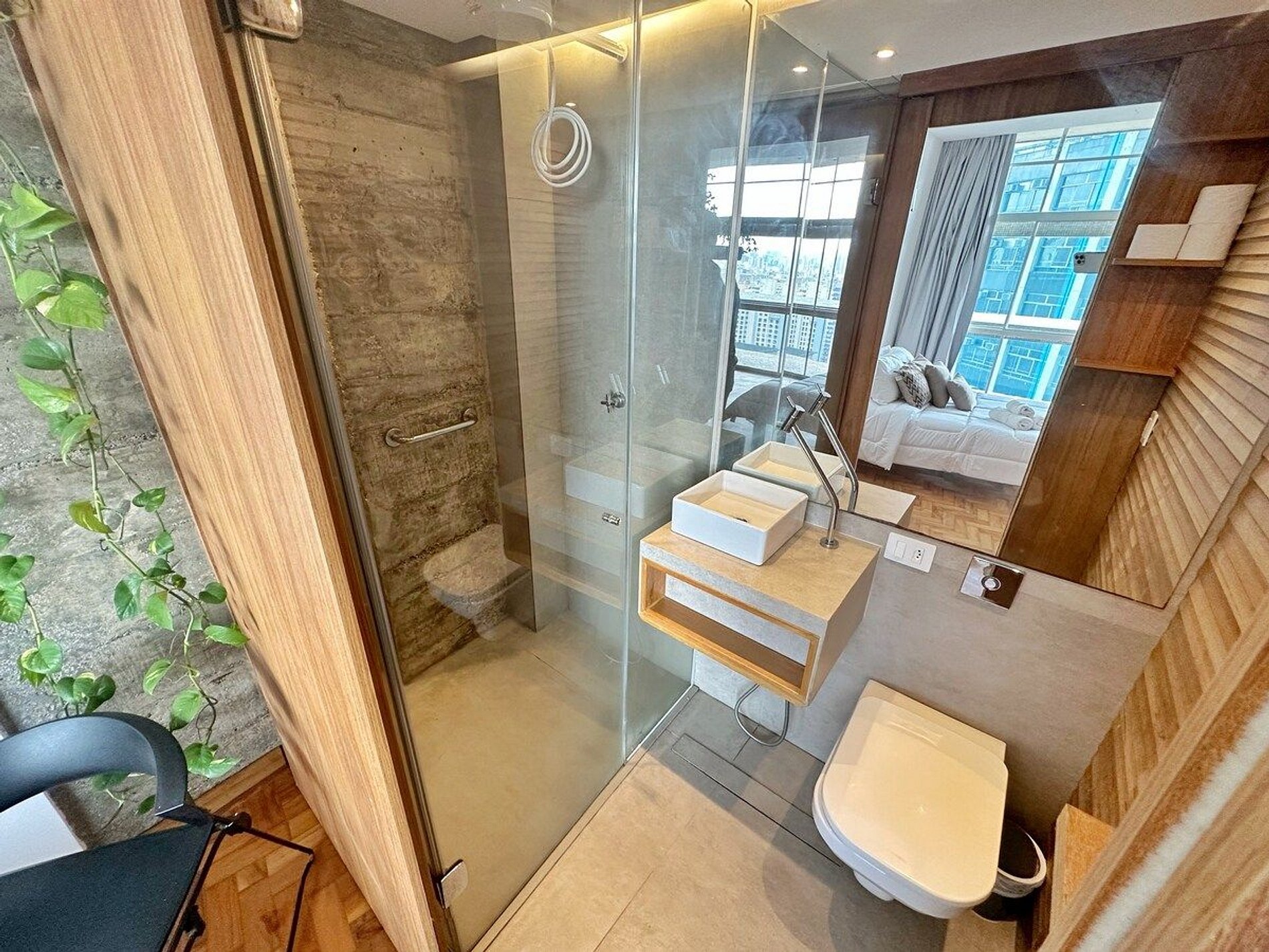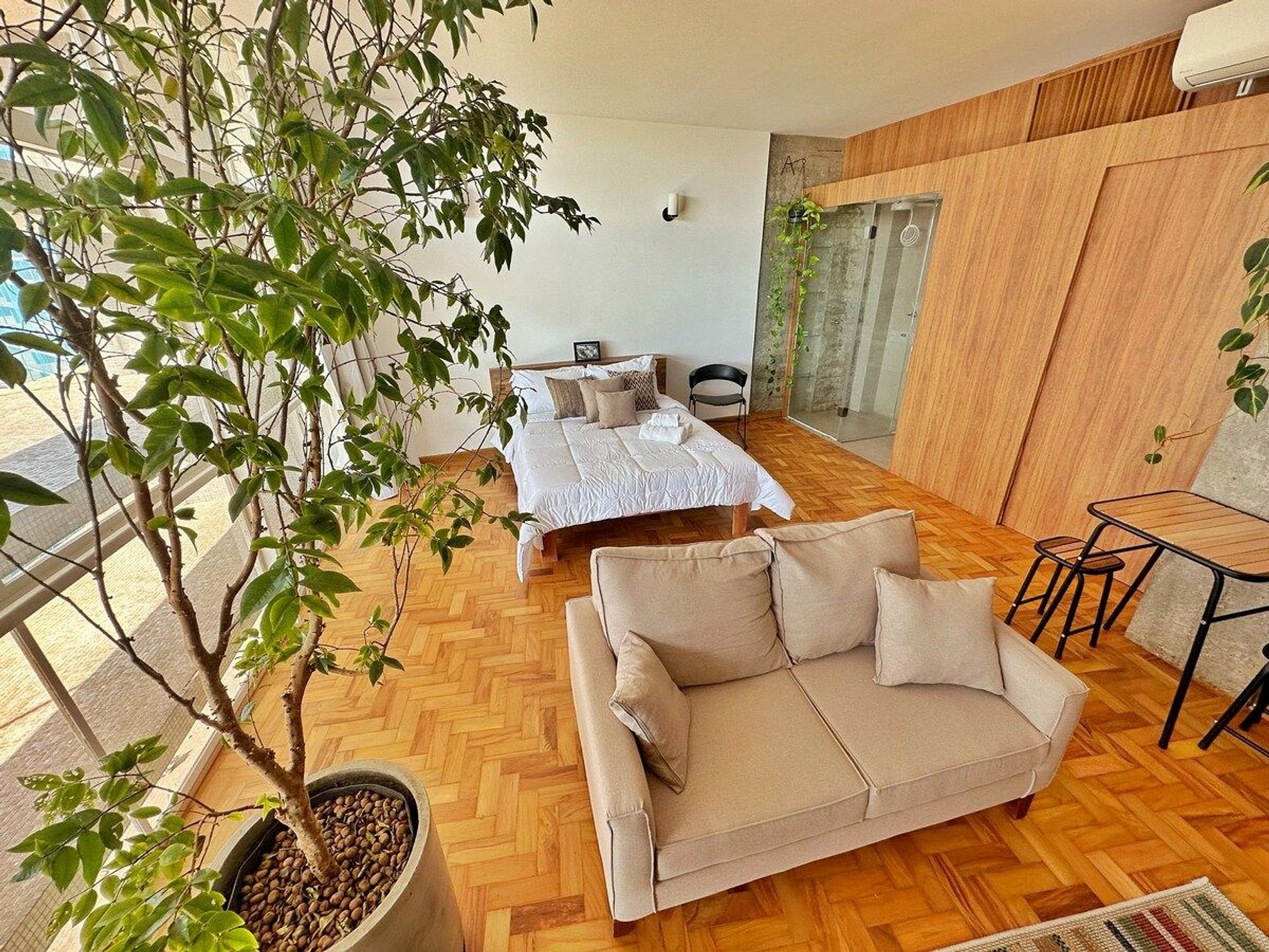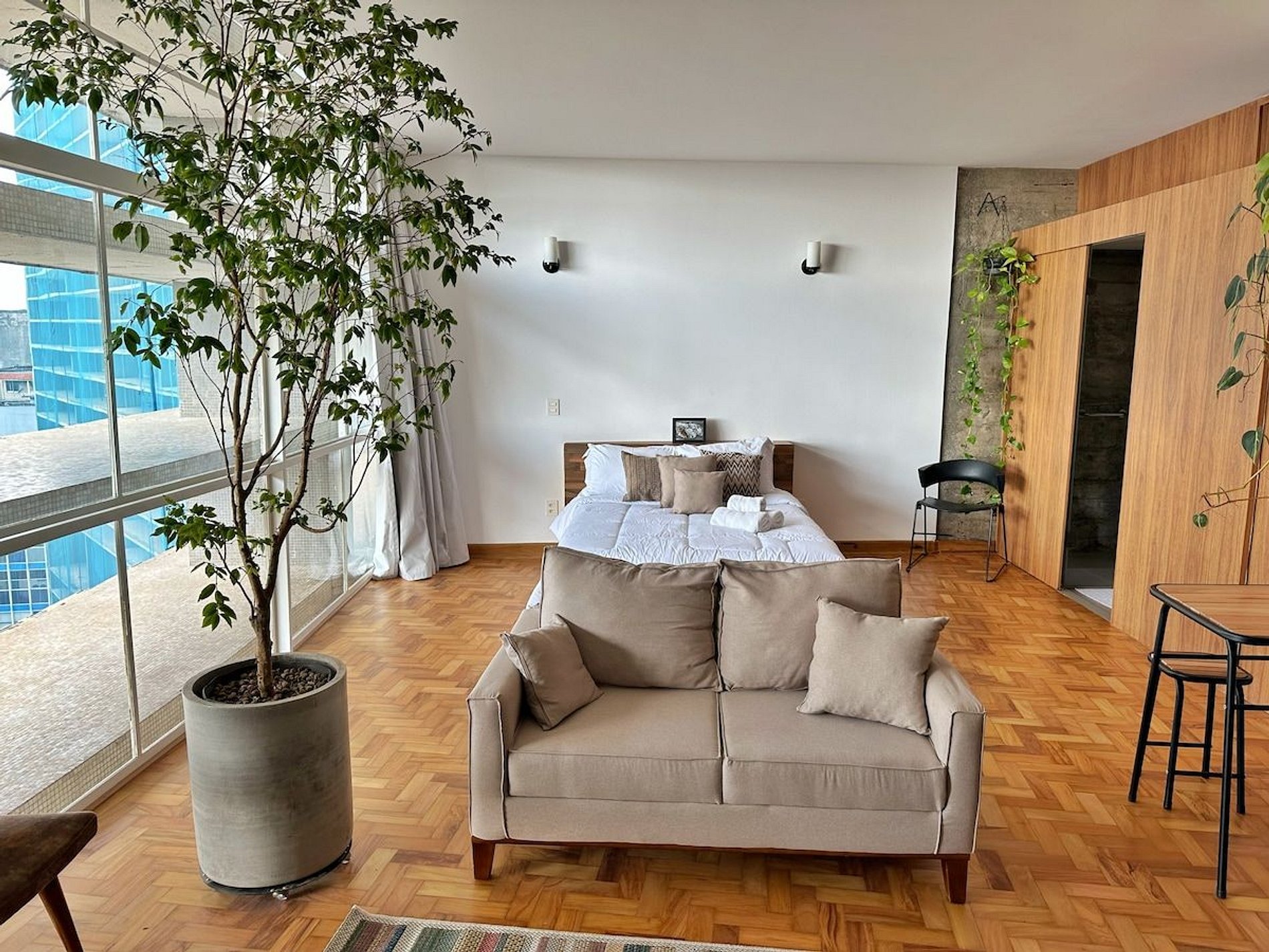 Studio confortável no icônico edifício Copan. Espaçoso e com estilo, o studio conta com cozinha completa, wi-fi e ar condicionado. Seja para estadias curtas ou longas, o studio atende todas as necessidades e fará com que se sinta em casa.