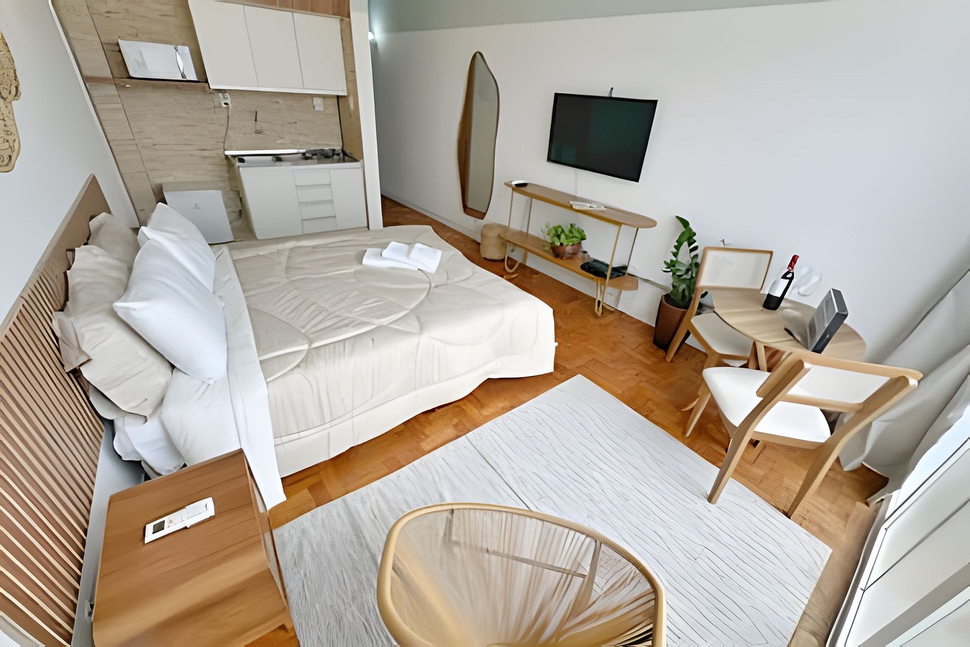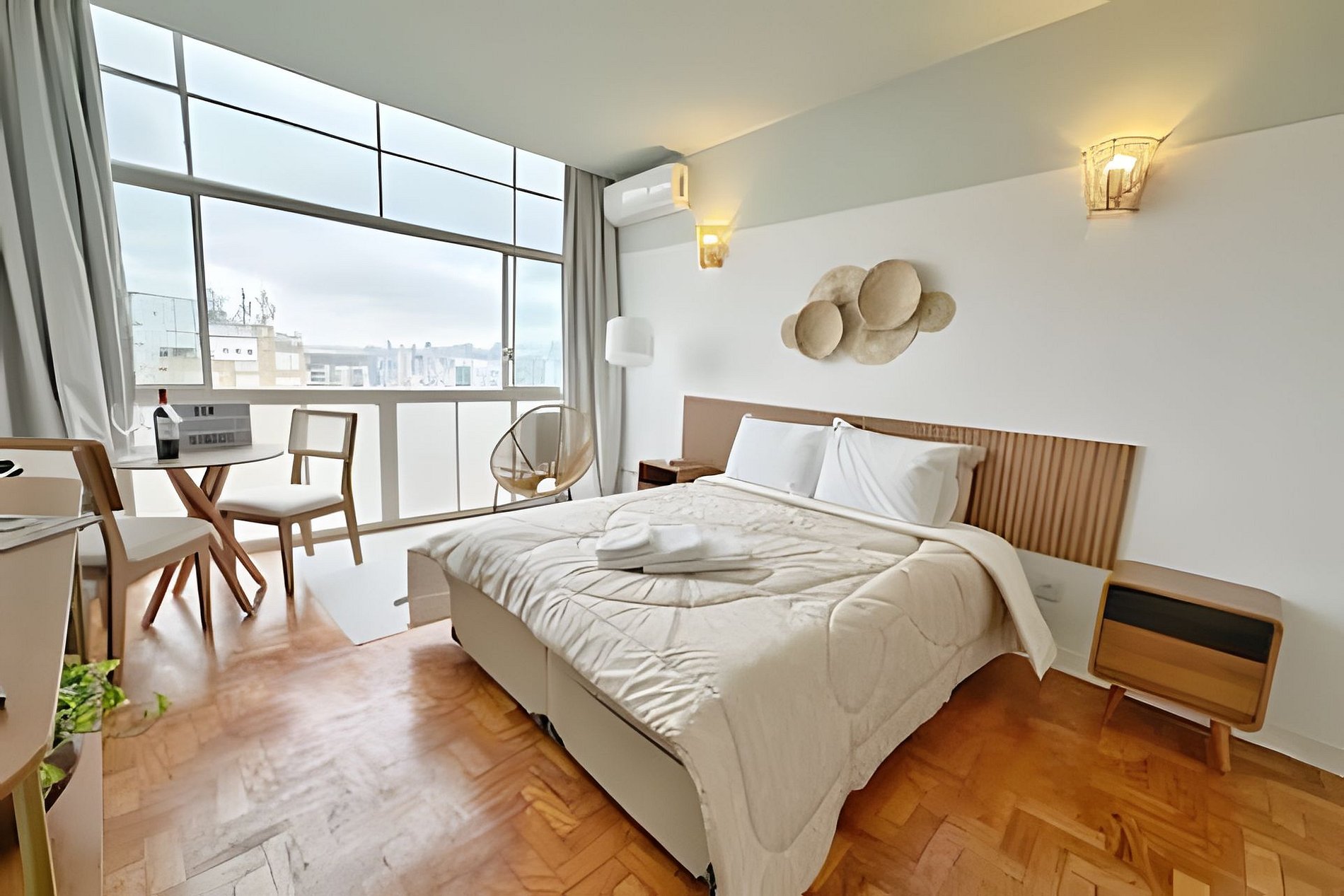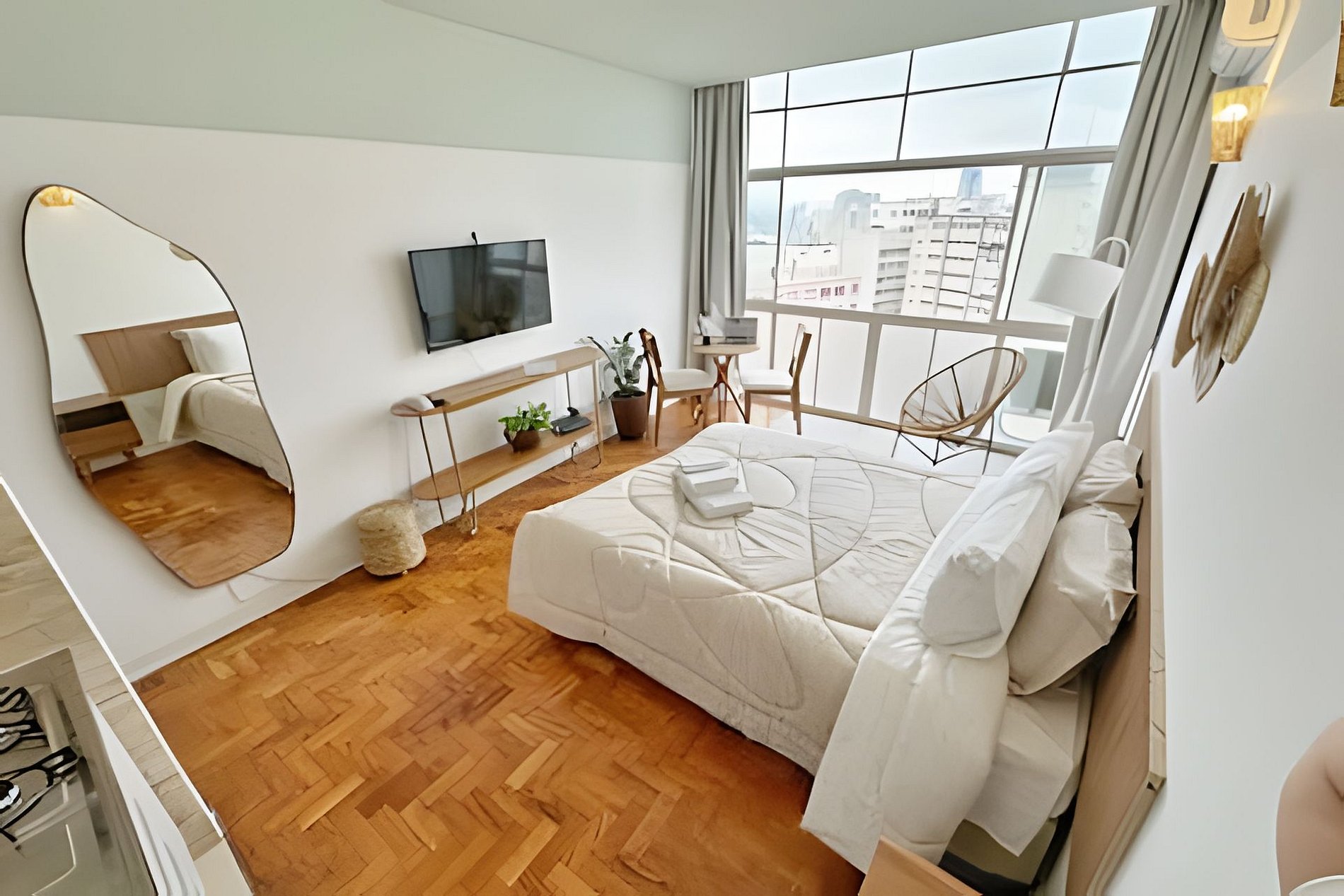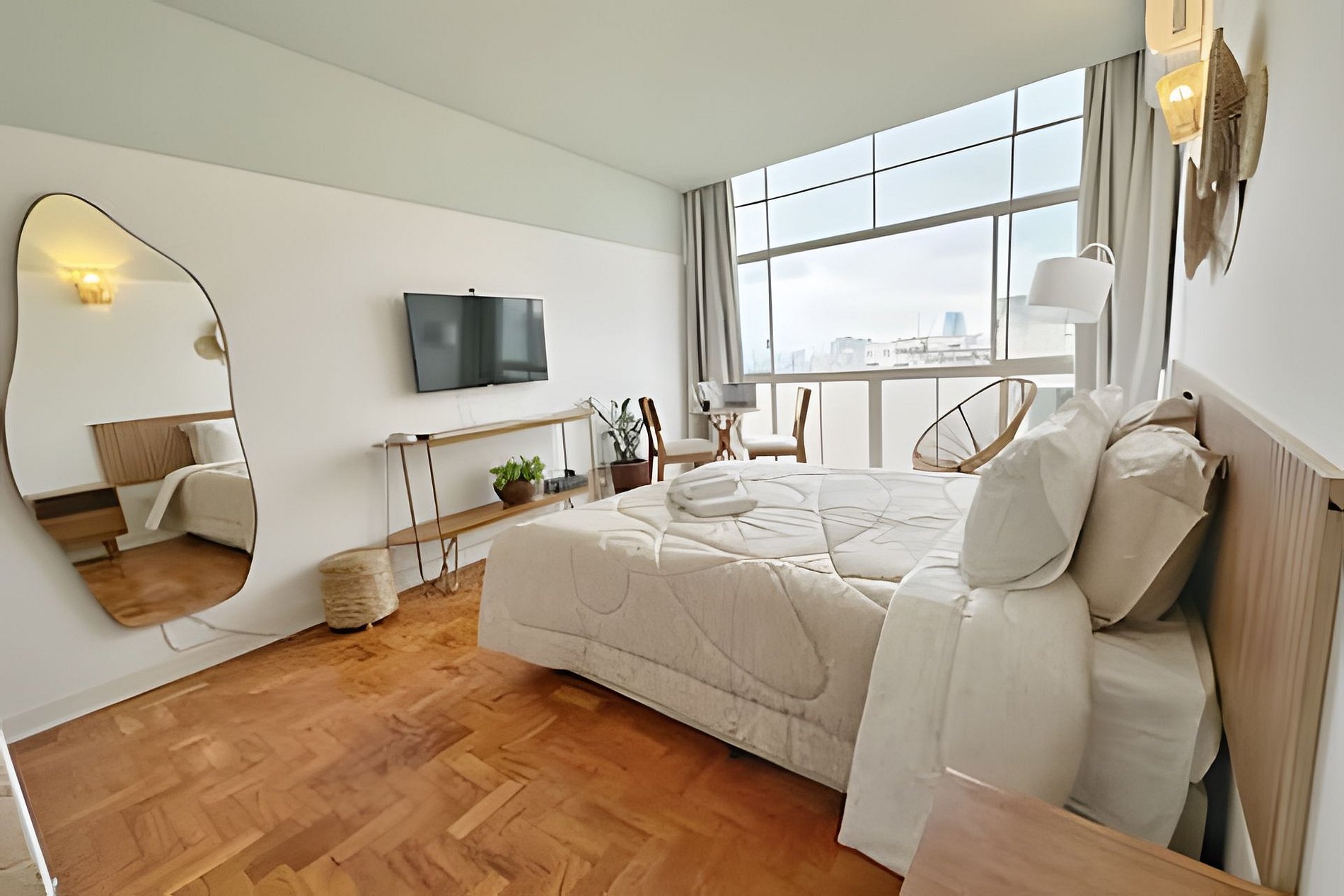 Hospede-se no icônico Edifício Copan e desfrute de uma vista incrível de São Paulo! Nosso apartamento oferece conforto e praticidade, com ar-condicionado, cozinha compacta equipada e uma decoração aconchegante. Ideal para viagens a trabalho ou lazer, você estará no coração da cidade, cercado por restaurantes, cafés e atrações culturais. Aproveite essa experiência única em um dos prédios mais famosos do Brasil!