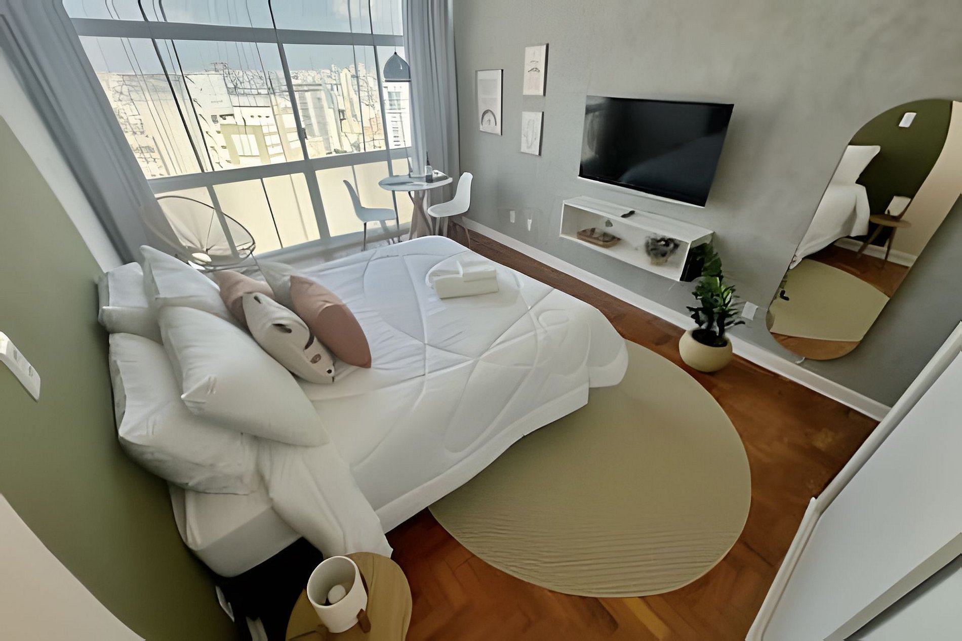 Que tal se hospedar no 26° andar do edifício Copan e assistir um lindo nascer do sol sobre o horizonte da cidade? Este apartamento é uma oportunidade perfeita para isso. O Edifício Copan é o prédio residencial mais famoso da América Latina e, por ser de uso misto, agrega também diversos serviços e restaurantes no térreo. São dois restaurantes indicados pelo Guia Michelin dentro do prédio, além de centenas de outras ótimas opções no entorno, como o mundialmente famoso “a casa do porco”.