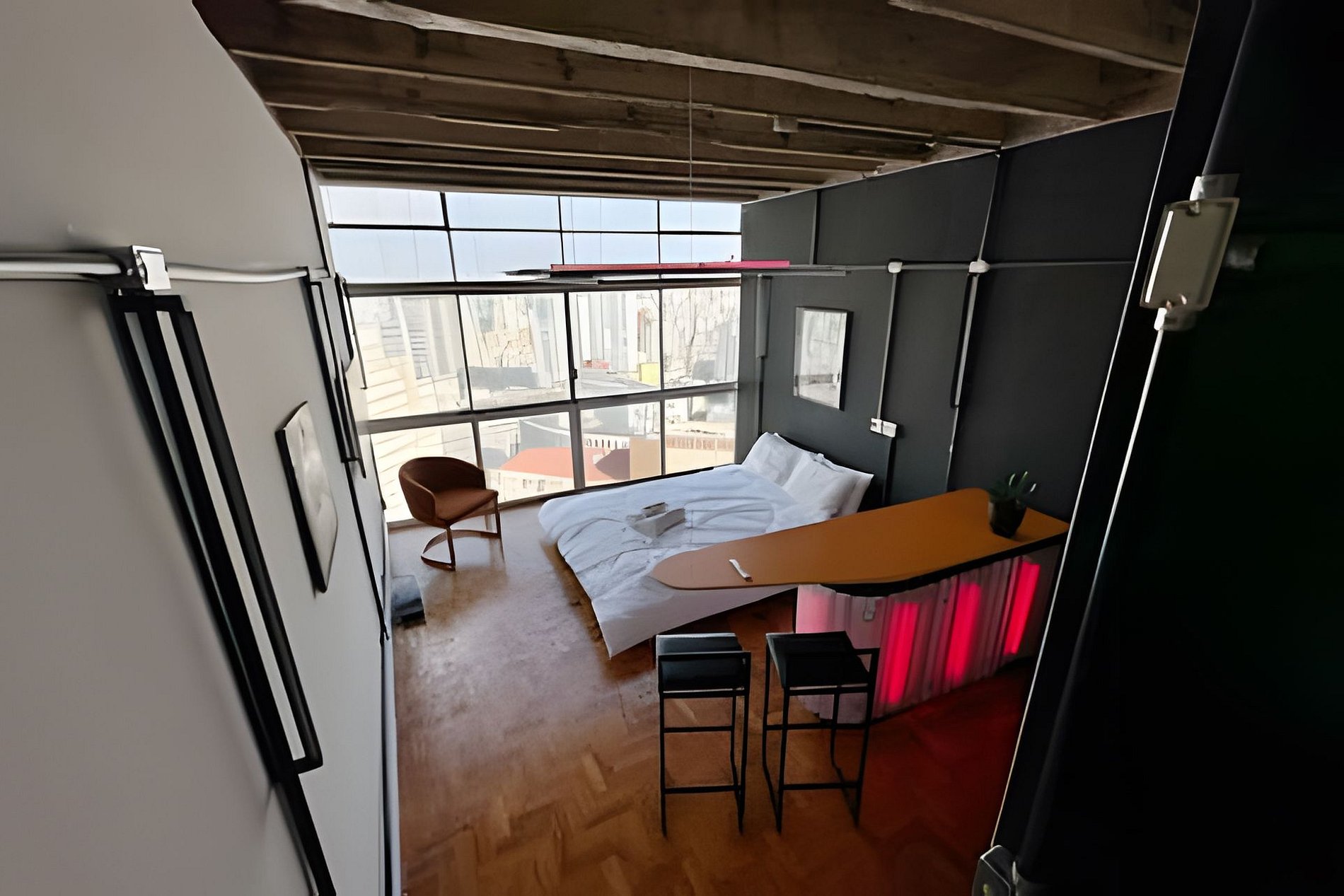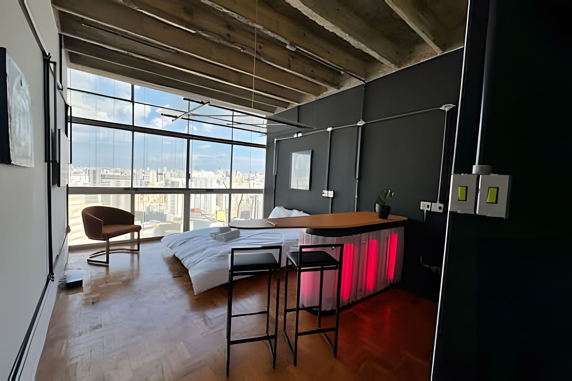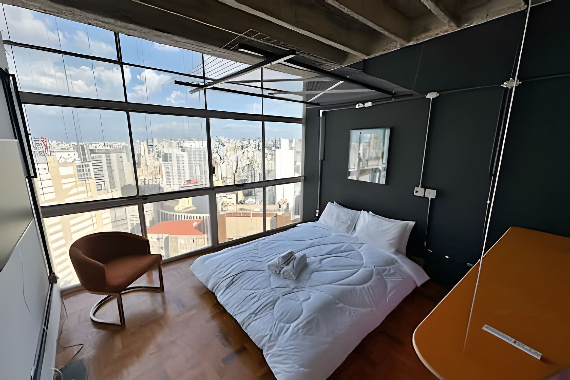 Studio recém reformado no Edifício Copan. Vista incrível do 26º andar para o Nascer do Sol. A cama baixa, junto com os vidros totalmente transparentes, vão fazer você se sentir dormindo nas nuvens. Decoração moderna e com elementos de arte contemporânea. Pequeno closet para deixar suas coisas organizadas. Internet de alta velocidade para seu home office ou smarttv.