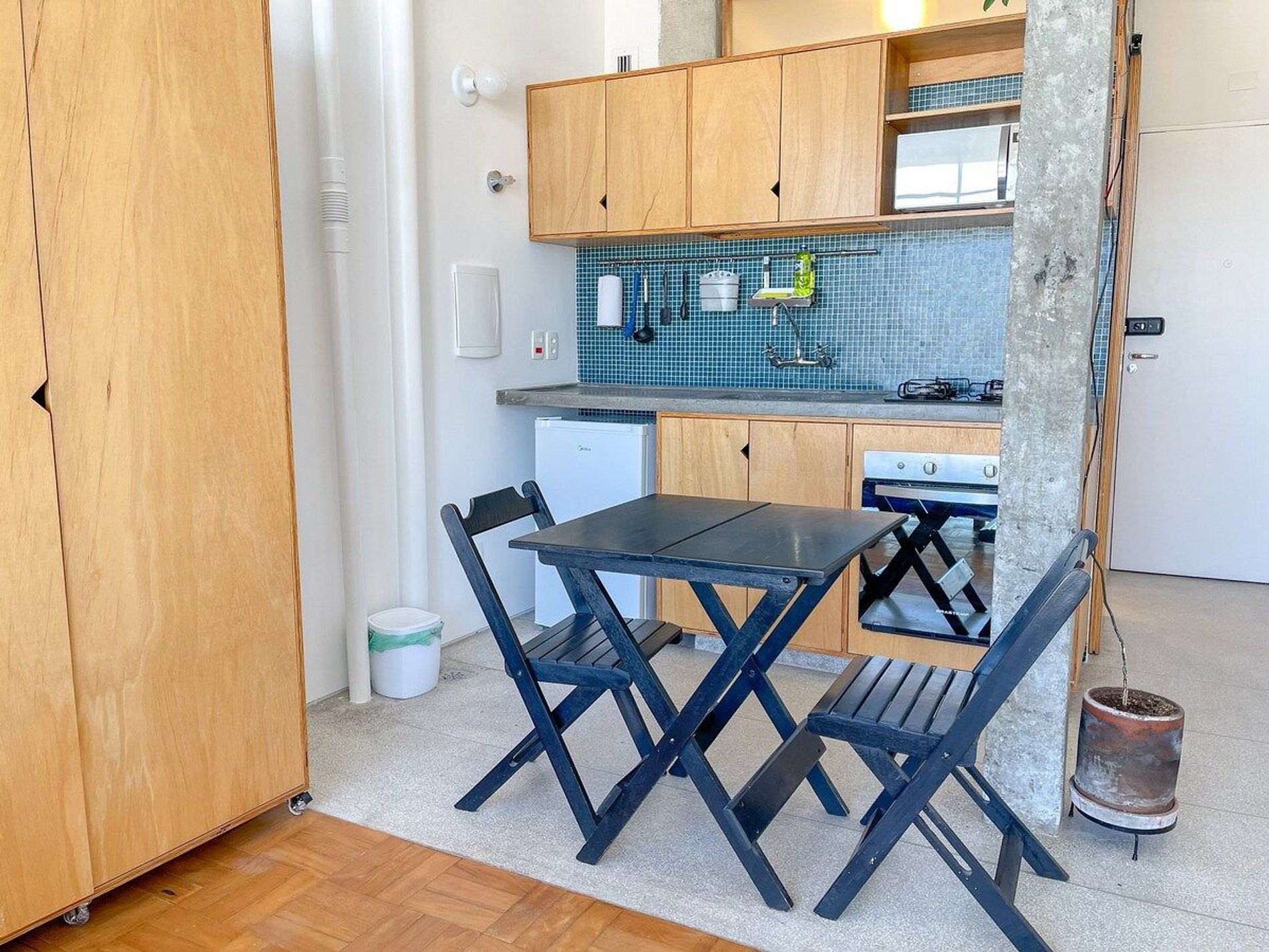 Studio no 30º andar do Ed. Copan com vista incrível 180º da Cidade. Veja Sampa do alto e encontre um refúgio confortável e prático para se hospedar. Cozinha totalmente equipada além de espaço de trabalho espaçoso, com internet fibra ótica. Decoração clean e cheia de estilo. Desenhado por Oscar Niemeyer, o edifício tem ótima localização, além de inúmeros serviços dentro do próprio prédio (padaria, restaurantes, cafés, salões de beleza e lojas).