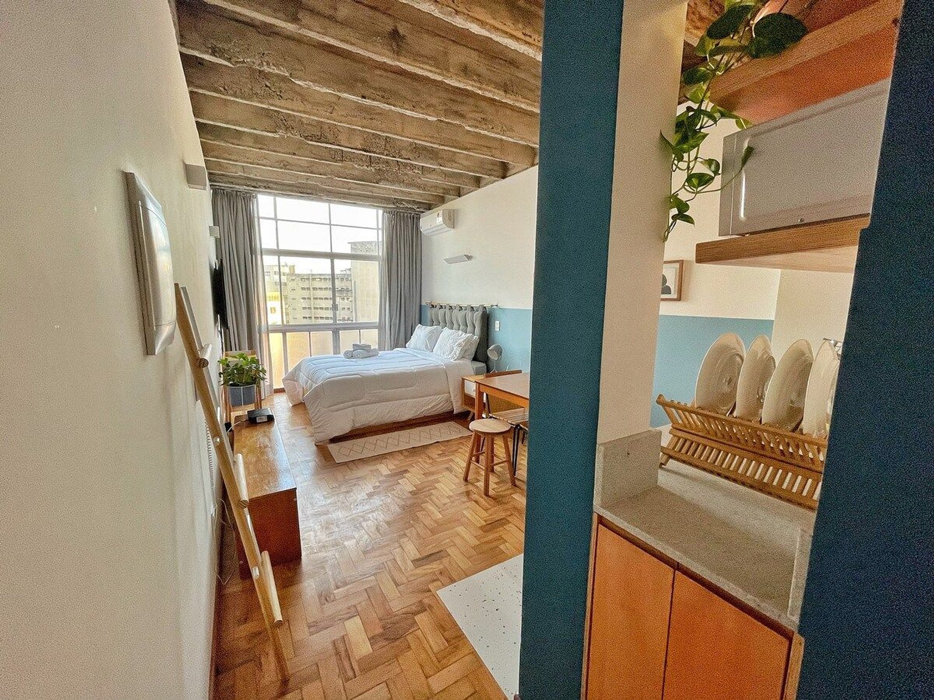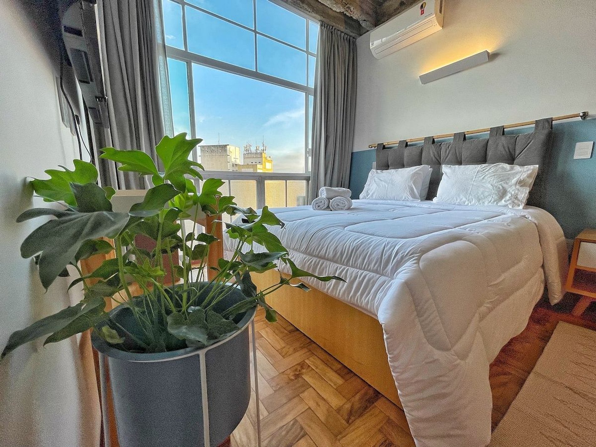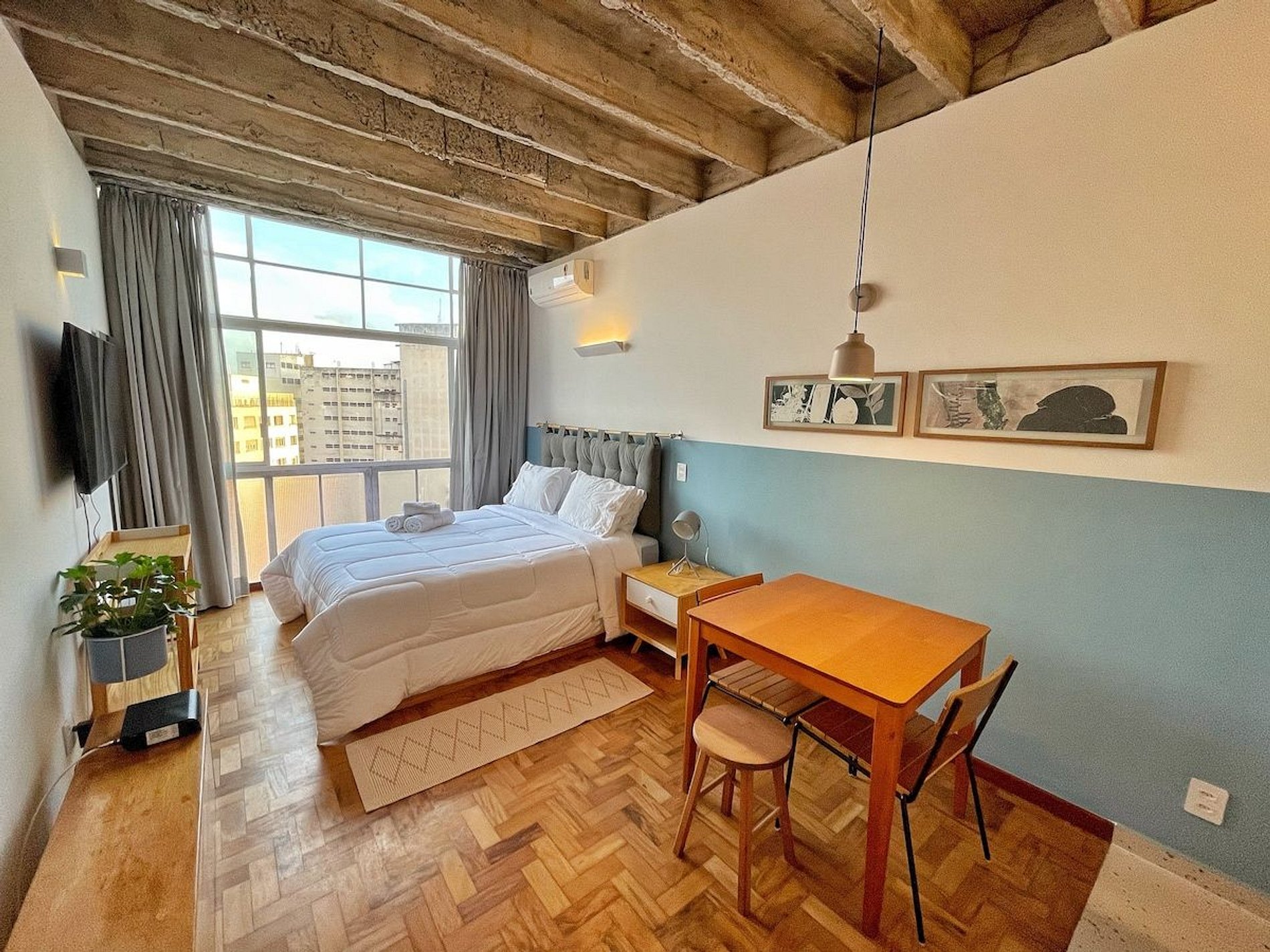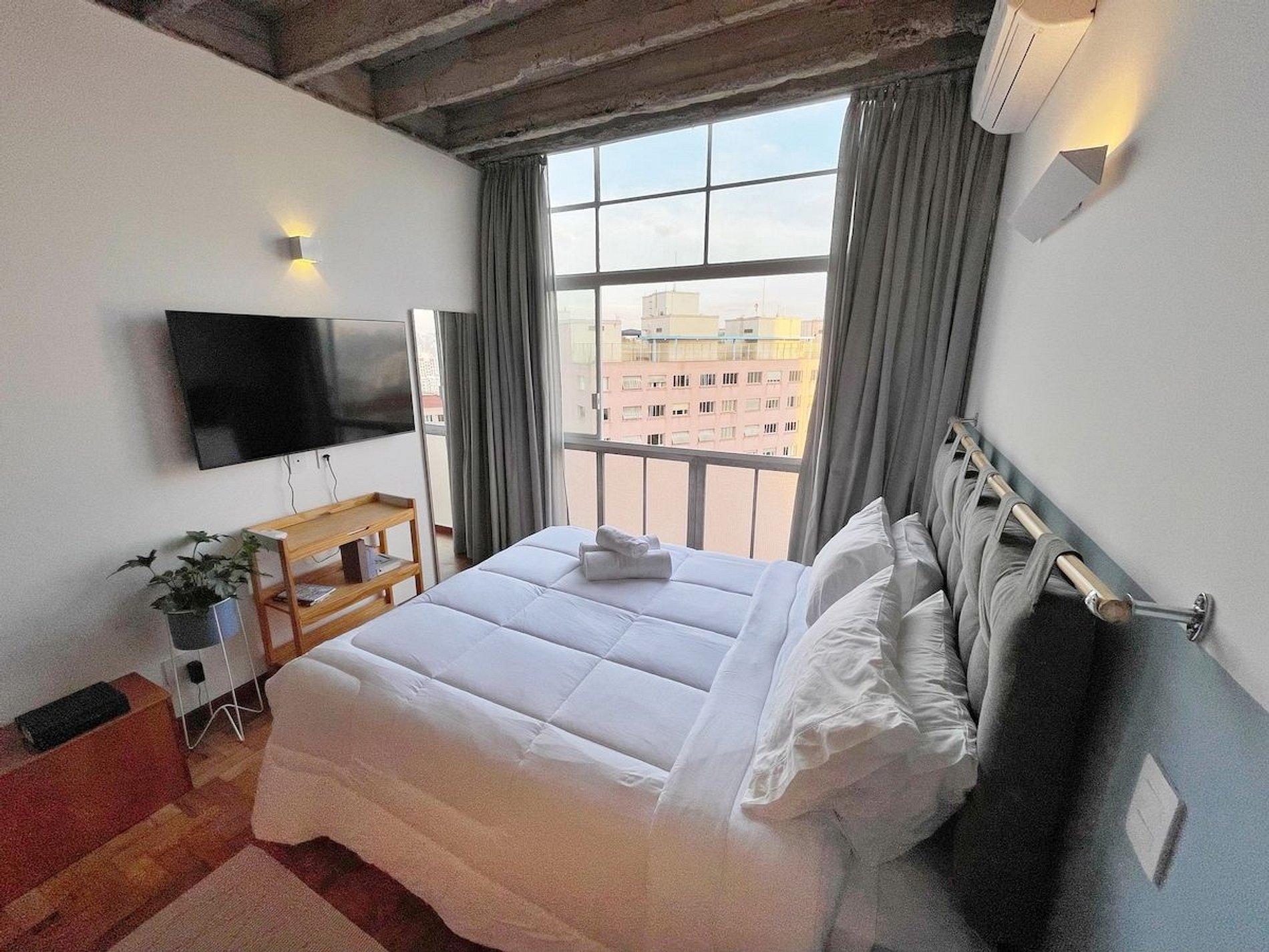 Studio completo para sua estadia mais longa no Copan. O apartamento fica no 21º andar e tem uma vista ótima da cidade. Além disso, conta com ar condicionado para você não sofrer nos dias de calor. Além de uma confortável cama queen, o apartamento também tem máquina de lavar e secar e internet rápida. Hospede-se perto dos principais pontos turísticos de São Paulo, bem como dos melhores restaurantes do Brasil, como Casa do Porco, Cuia e Bar da Dona Onça.