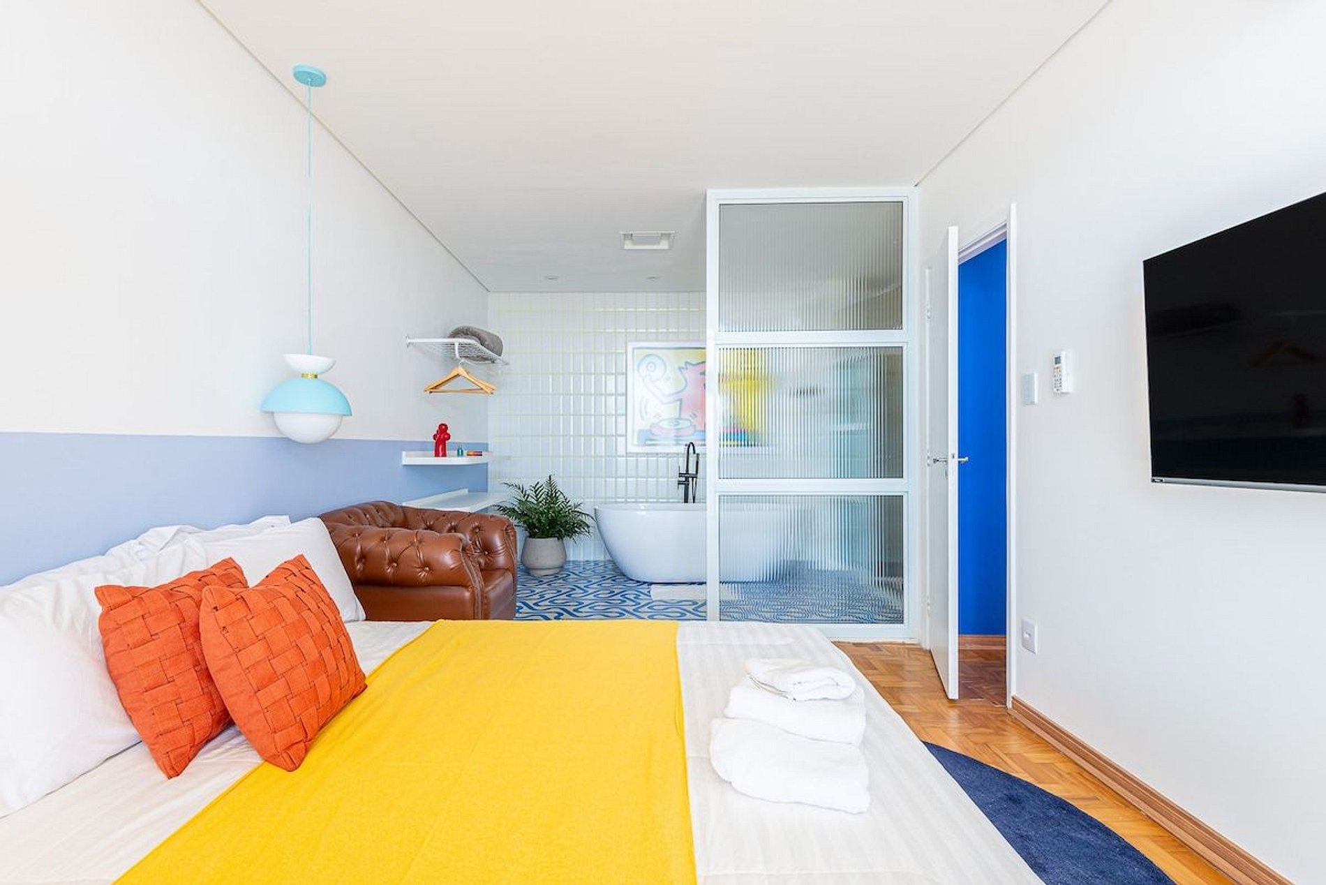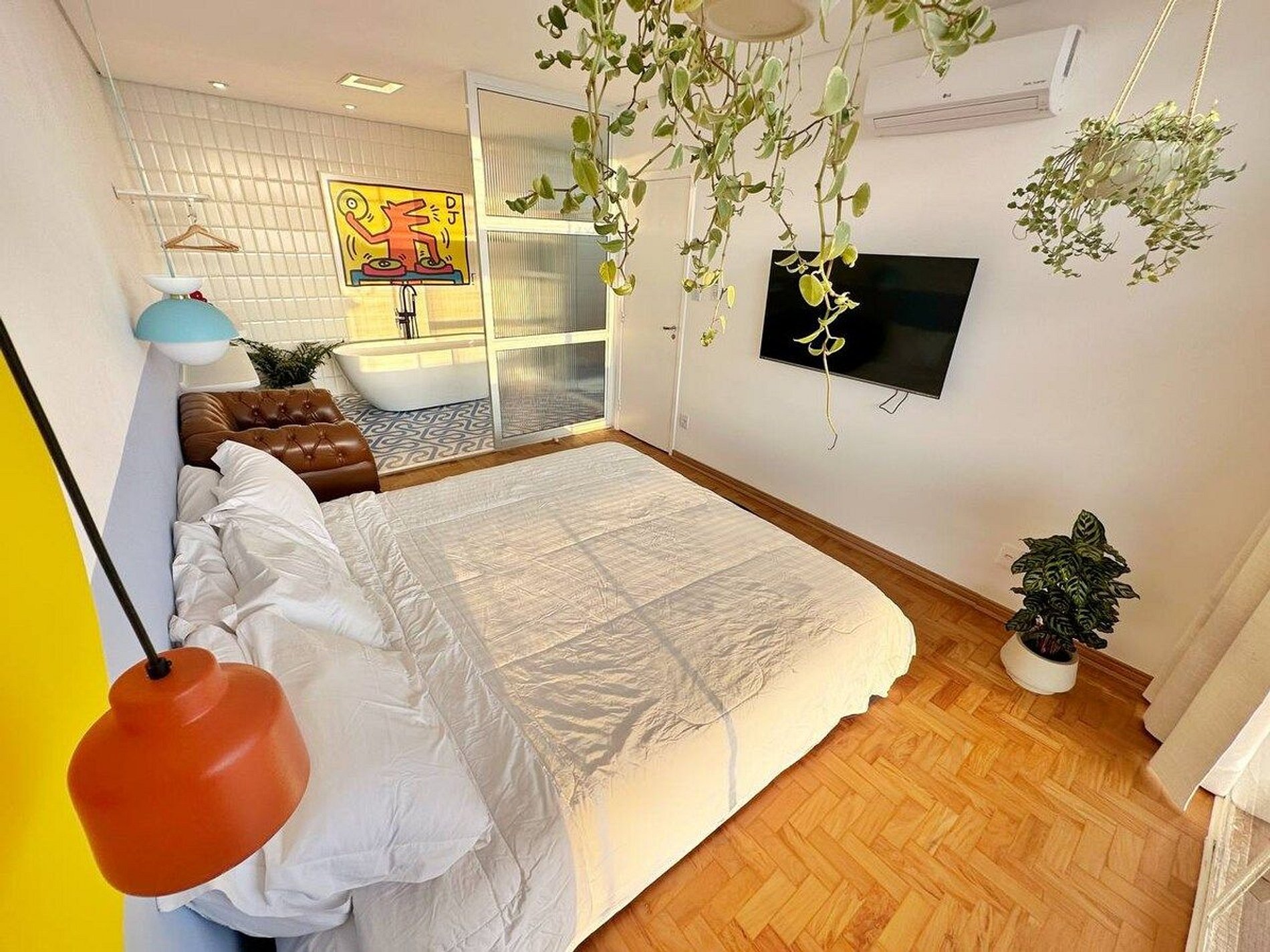 Apartamento de um dormitório incrível no 28º andar do Copan, com um pôr do sol impressionante durante todo o ano. Cama King Size, Ar Condicionado nos dois ambientes, Closet, espaço para trabalho com internet 300MBPs, rede de descanso, cozinha completa e espaçosa, automatizada com sistema Amazon/Alexa. O apartamento mais completo que você pode encontrar no Copan