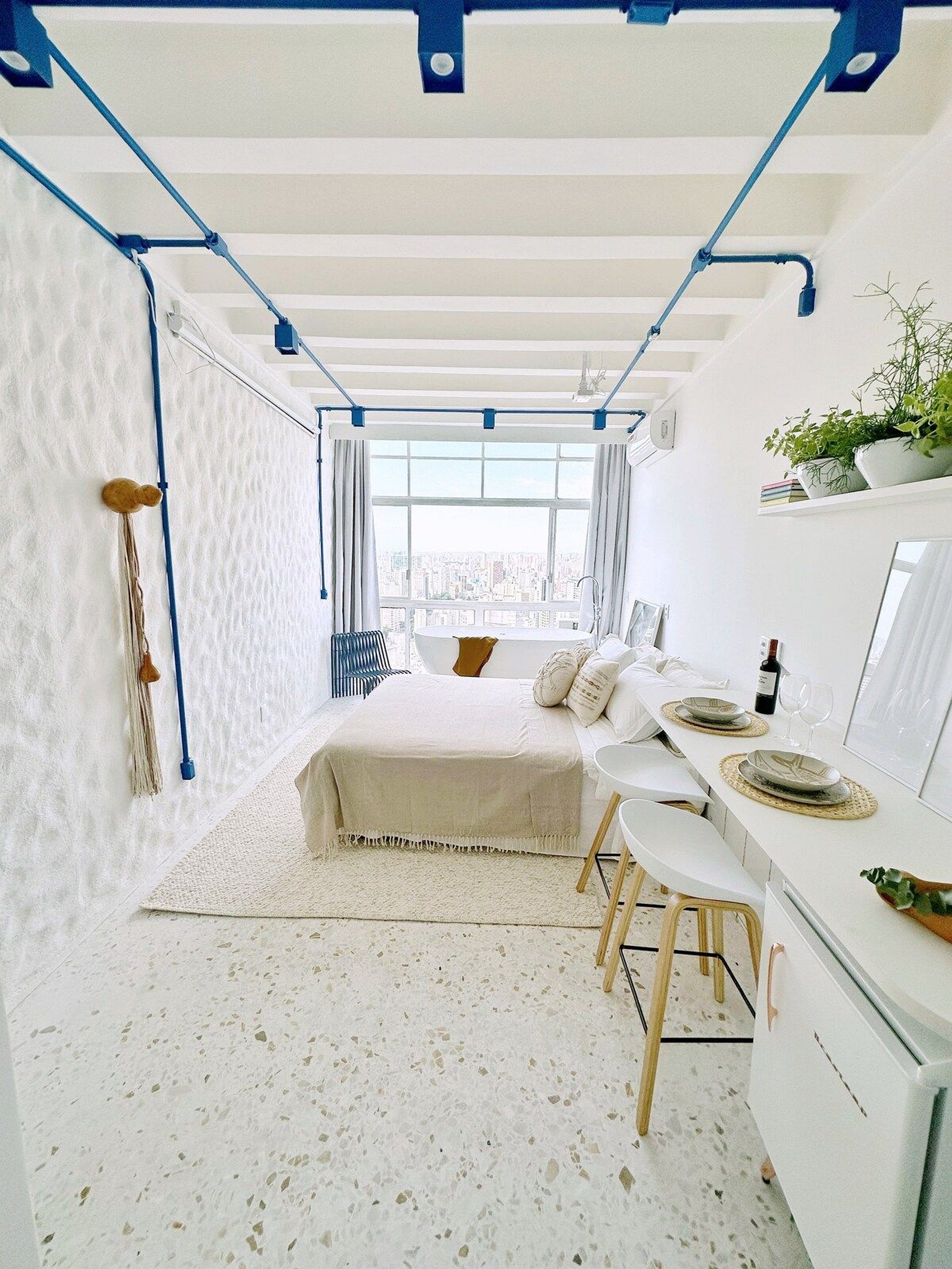 Daydreaming significa sonhar acordado. E é assim que queremos que você se sinta. Tire os sapatos e caminhe nas nuvens. Do alto do 31º andar do Edifício Copan, o prédio mais famoso do Brasil, experimente estar isolado de toda a movimentação do centro de São Paulo, mas perto de todas as suas facilidades. Banheira de imersão. Ar condicionado. Telão de 100". Cozinha básica. Cama Queen Size. Projeto de interiores por @yanainainteriores. Importante: é proibido calçar sapatos.