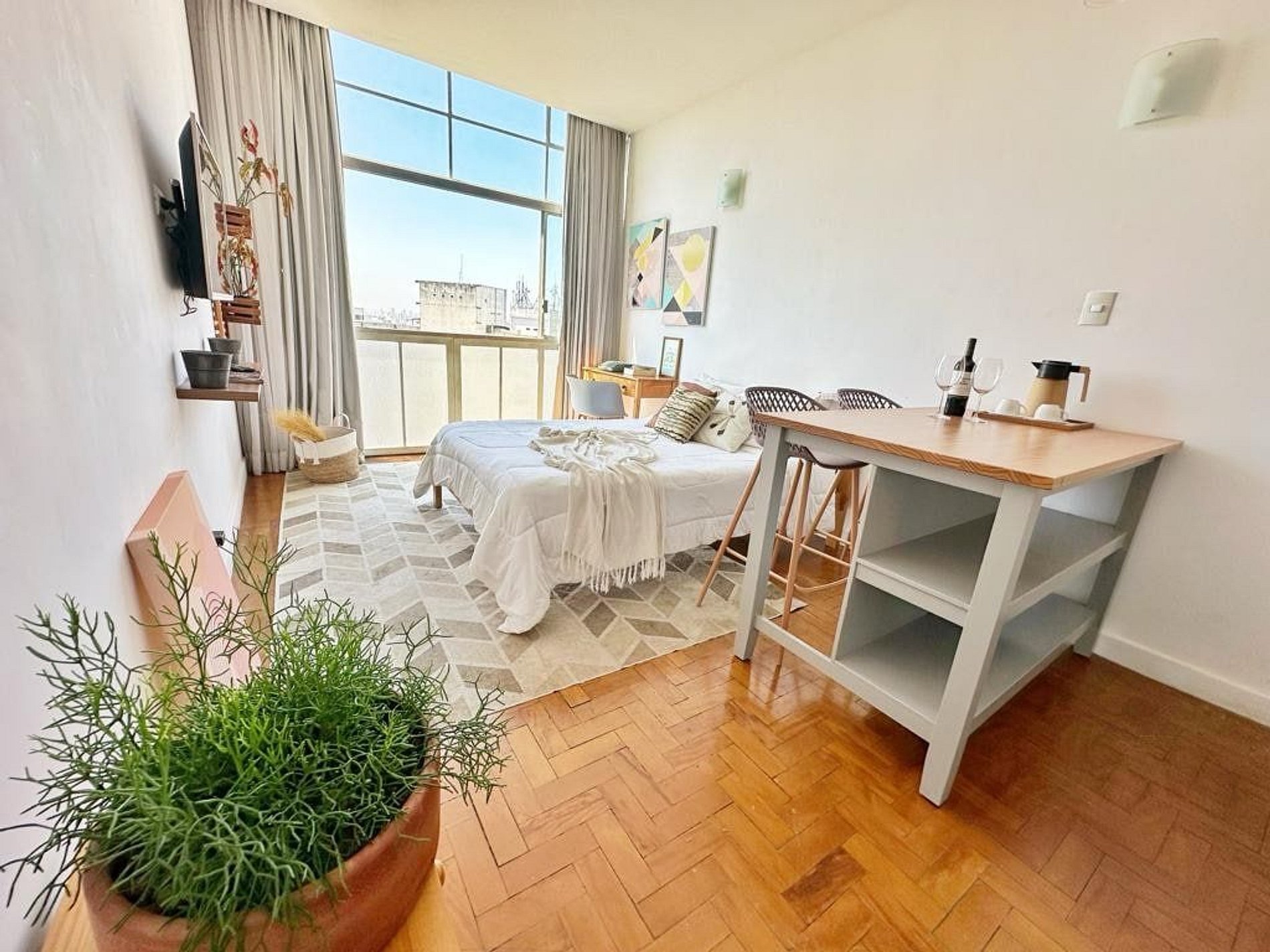 Studio confortável e bem localizado no prédio mais famoso de São Paulo. Totalmente reformado, com boa iluminação, agradável para estadias curtas e longas. Decoração alegre e funcional, com vista sensacional da cidade. Próximo ao metrô e a corredores de ônibus, propicia fácil acesso aos principais pontos de São Paulo. Desenhado por Oscar Niemeyer, o edifício tem ótima localização, além de inúmeros serviços dentro do próprio prédio (padaria, restaurantes, cafés, salões de beleza e lojas).