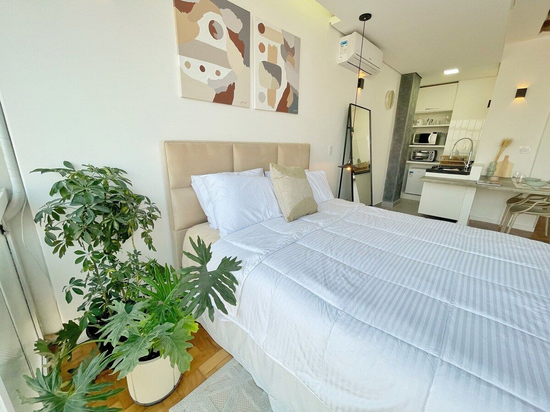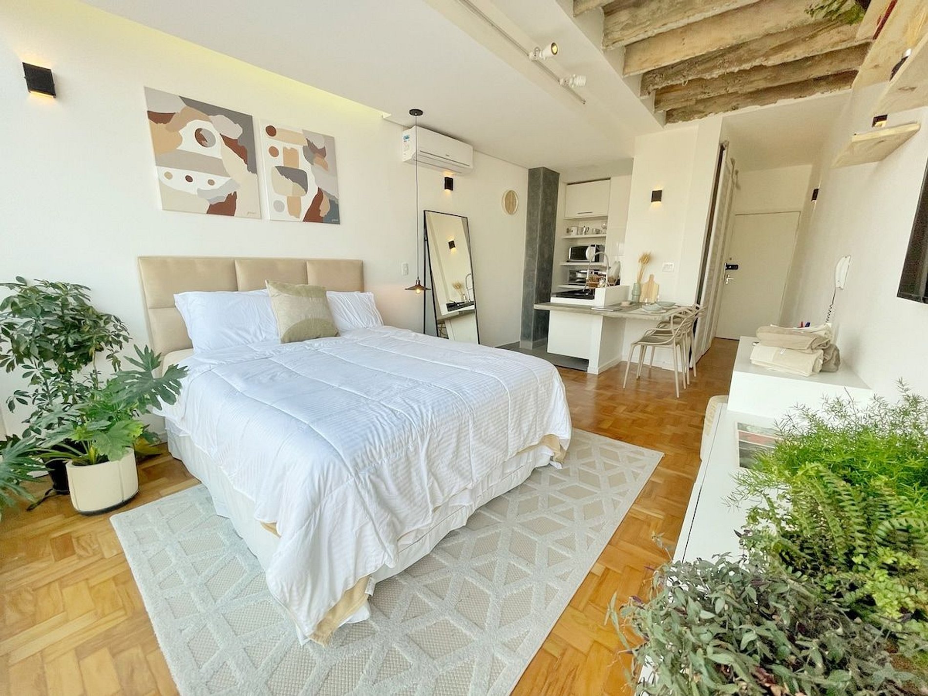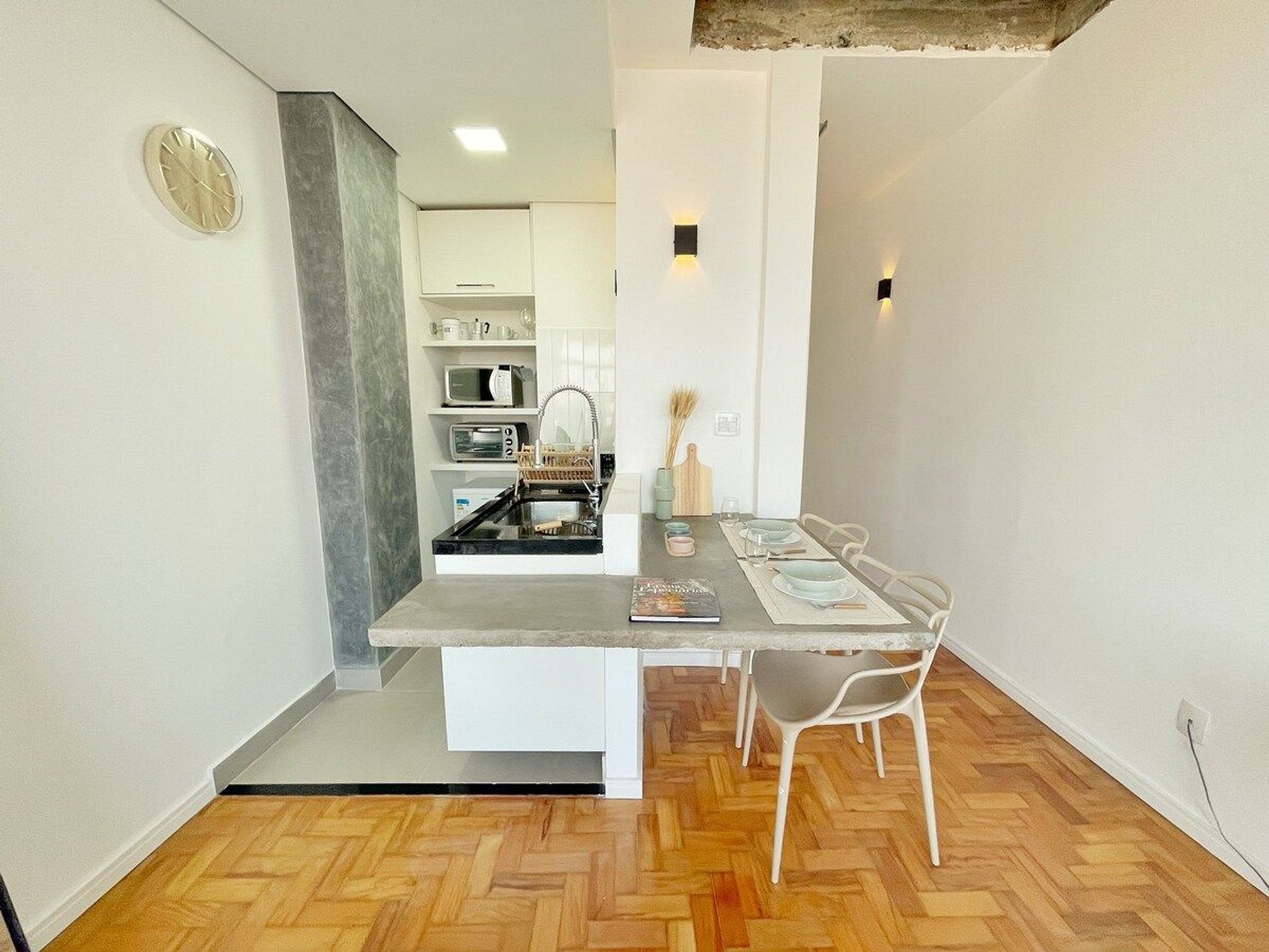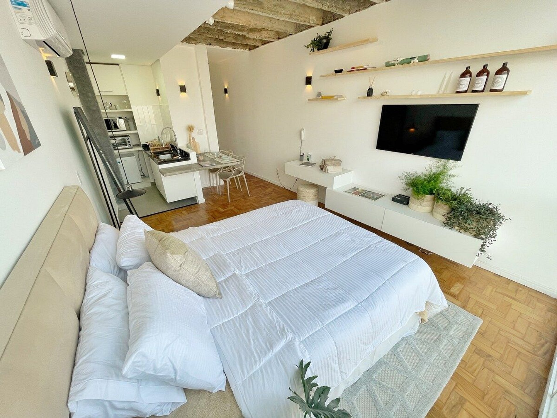 Projeto de @Zairagon Apartamento incrível no 27º andar do edifício mais famoso da cidade, o Copan. Apartamento com vista ampla e desimpedida, com uma cama Queen super confortável e SmarTV. Além disso, o apartamento conta com uma cozinha completa e mesa de jantar/trabalho, para quem quer curtir uma noite especial ou fazer seu Home Office em um lugar diferente. Para os dias mais quentes, o apartamento conta com Ar Condicionado, mas as janelas amplas já permitem uma ótima ventilação natural.