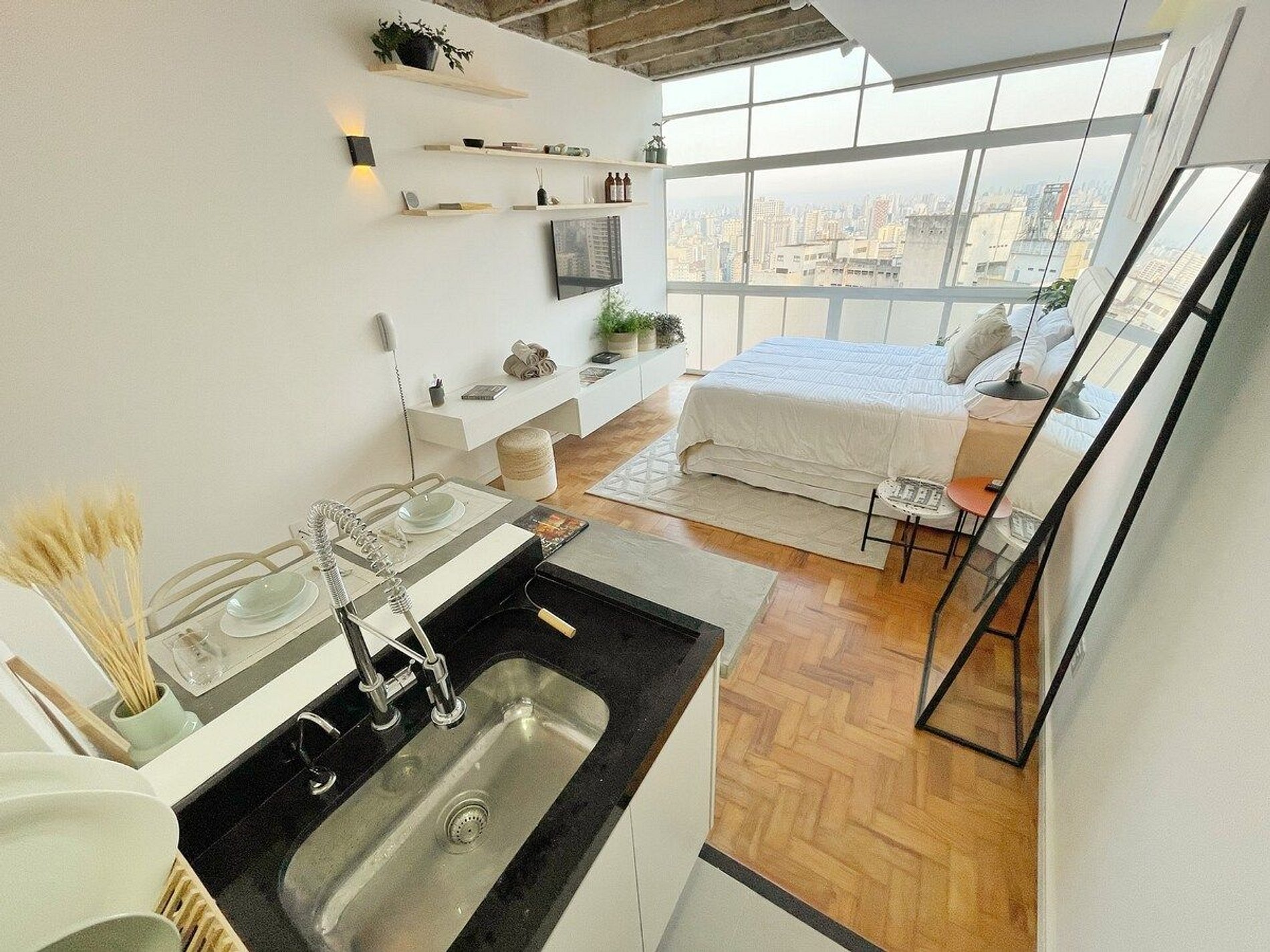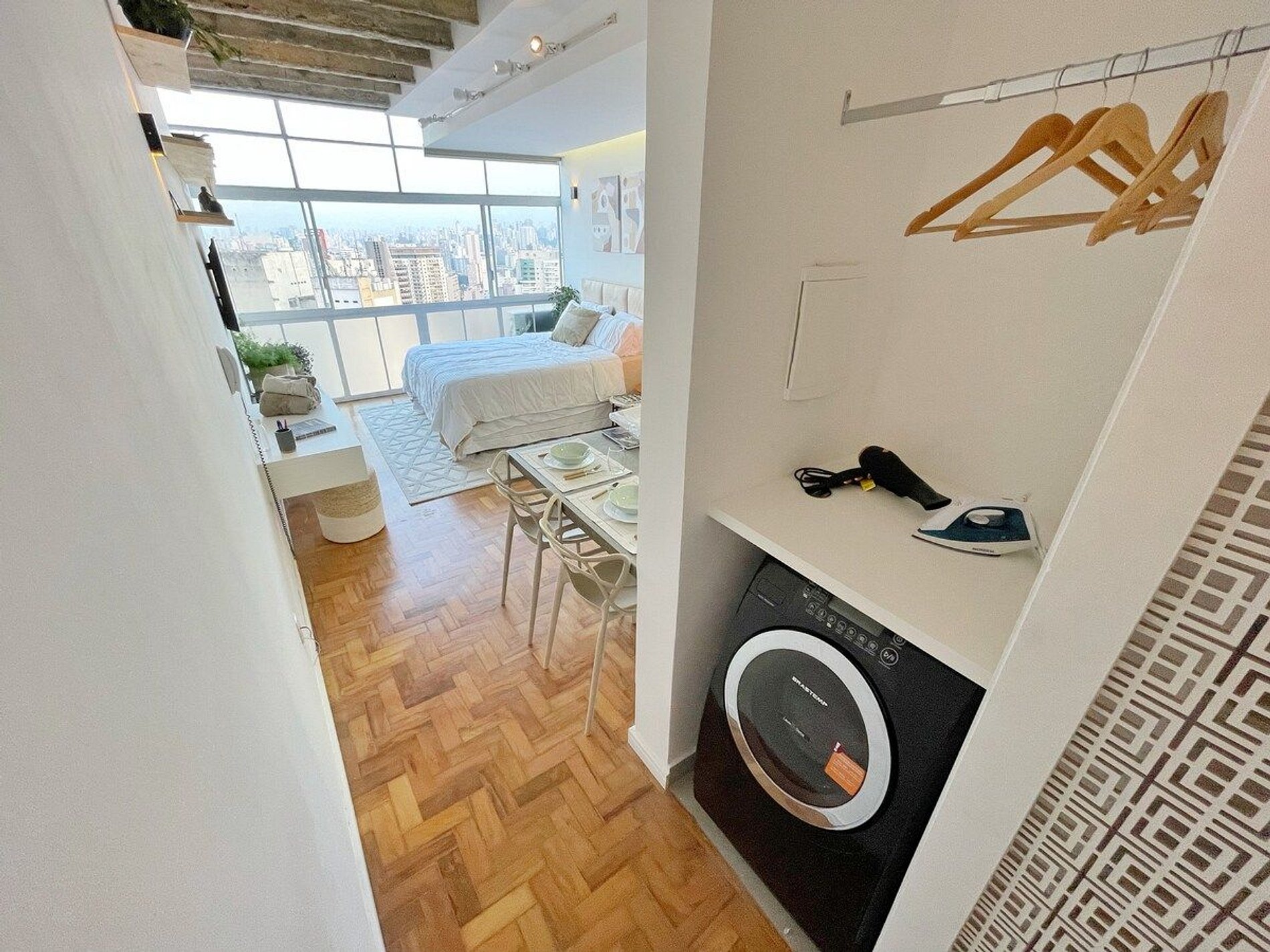 Localização e Mobilidade: corredor de ônibus em frente ao Copan, metrô República (Linhas Vermelha e Amarela) a 200 m, além de restaurantes, padaria, cafeteria, lavanderia, salão, lojas e galeria de arte dentro do prédio.