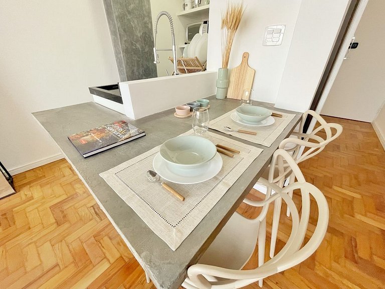 Projeto de @Zairagon Apartamento incrível no 27º andar do edifício mais famoso da cidade, o Copan. Apartamento com vista ampla e desimpedida, com uma cama Queen super confortável e SmarTV. Além disso, o apartamento conta com uma cozinha completa e mesa de jantar/trabalho, para quem quer curtir uma noite especial ou fazer seu Home Office em um lugar diferente. Para os dias mais quentes, o apartamento conta com Ar Condicionado, mas as janelas amplas já permitem uma ótima ventilação natural.
