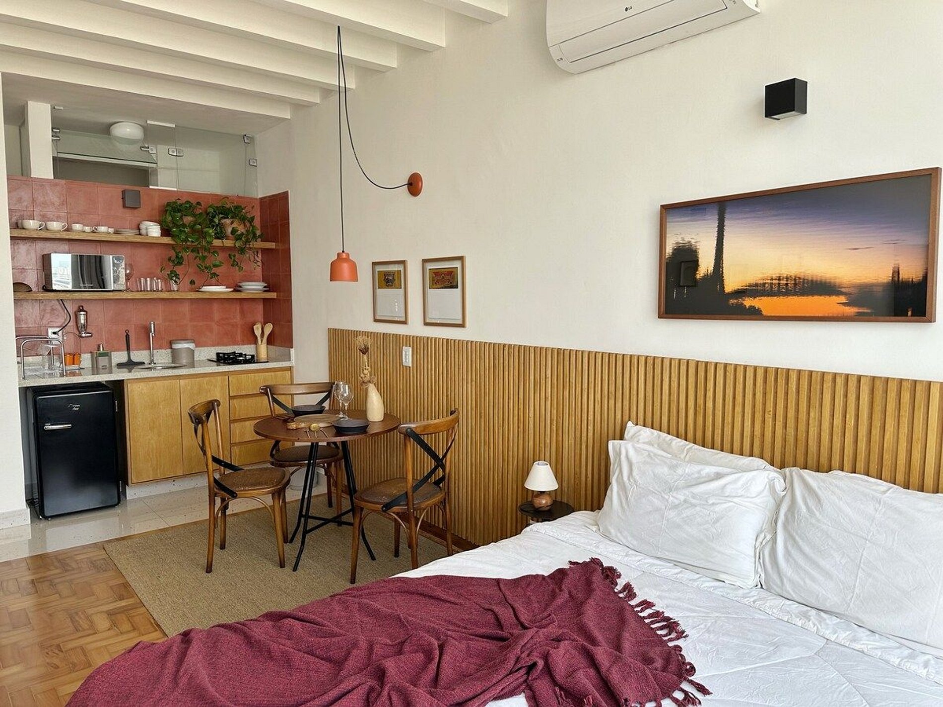Curta uma vista panorâmica surpreendente do penúltimo andar do Edifício Copan, o prédio residencial mais famoso do Brasil. Hospede-se em um ícone arquitetônico com todo conforto e comodidade. Dezenas de restaurantes e lojas no térreo do edifício tornarão sua estadia mais cômoda e prazerosa. O apartamento conta com ar condicionado e com internet de alta velocidade, além de uma confortável cama Queen Size.