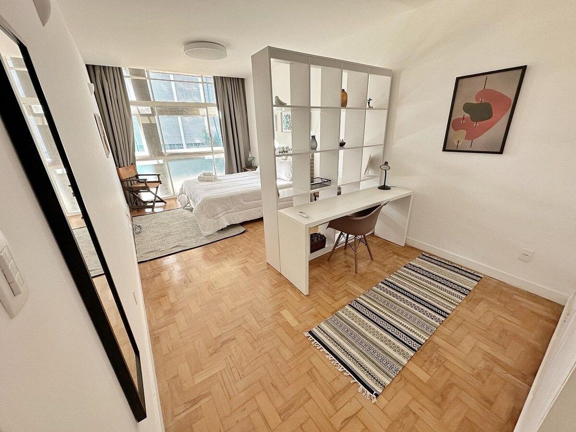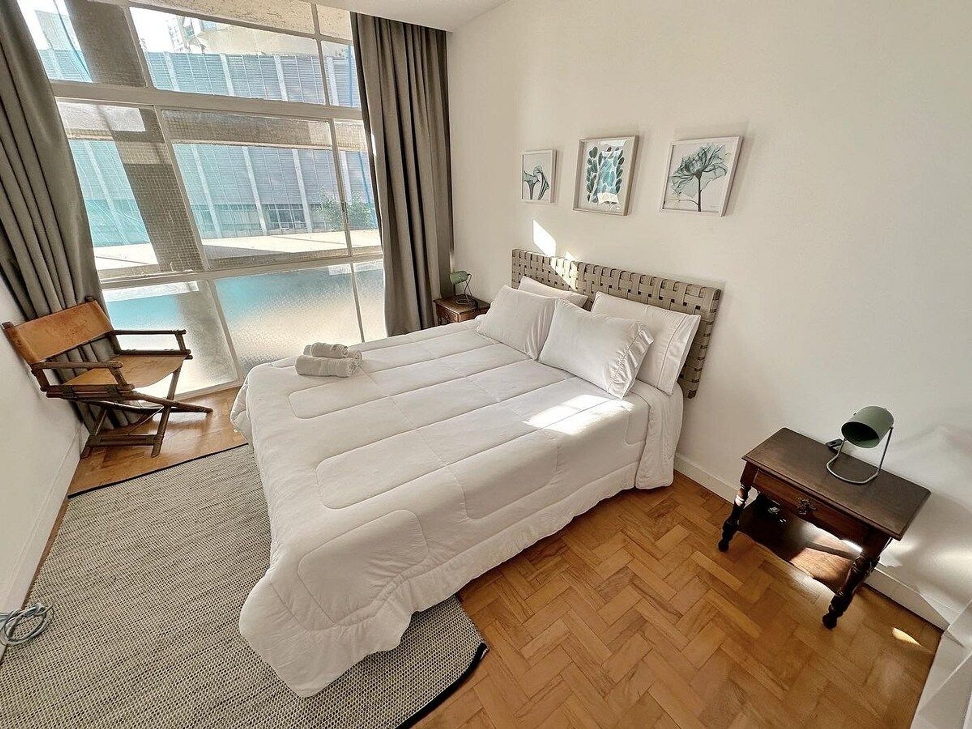 Um dormitório espaçoso no Copan + AC e cama Queen