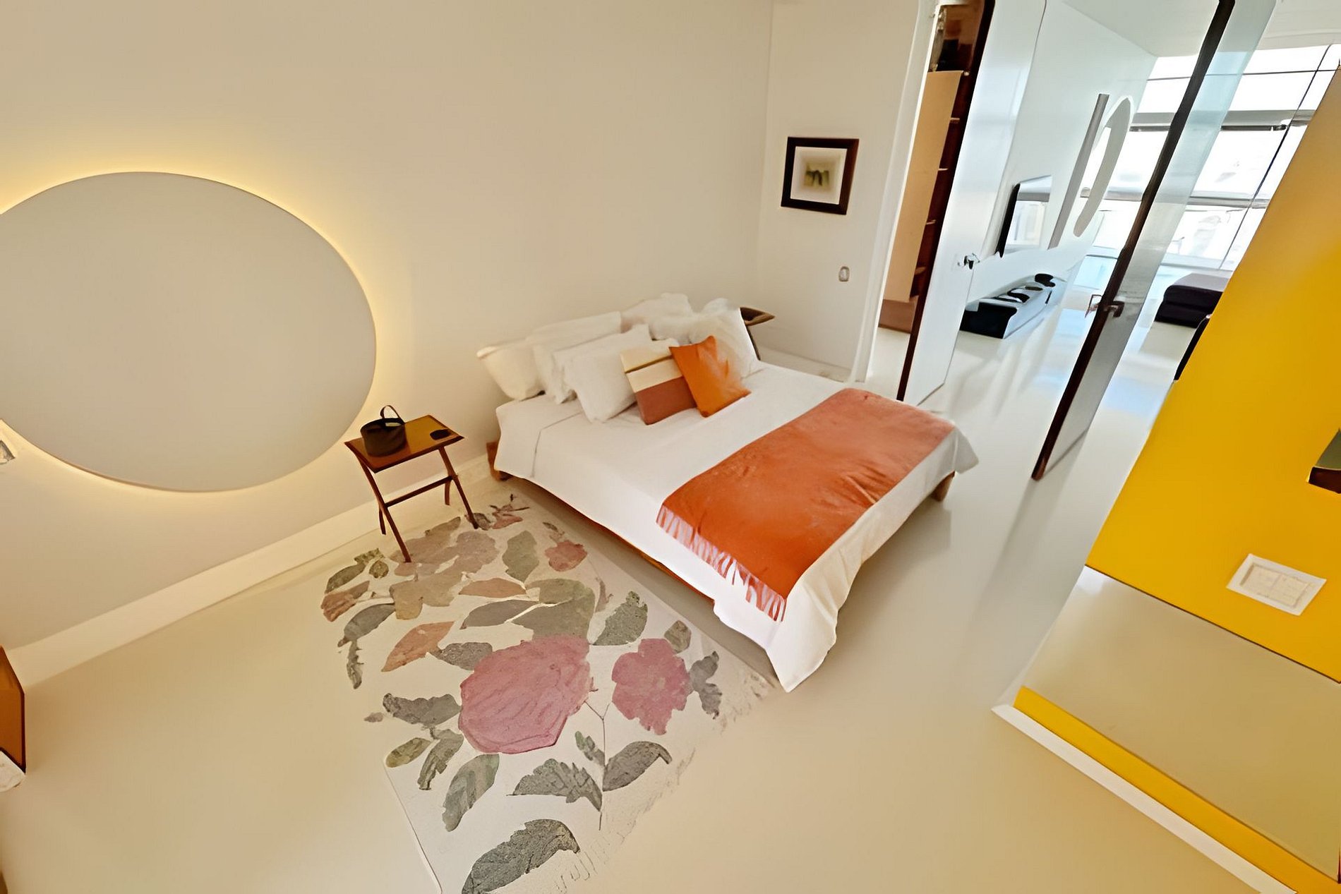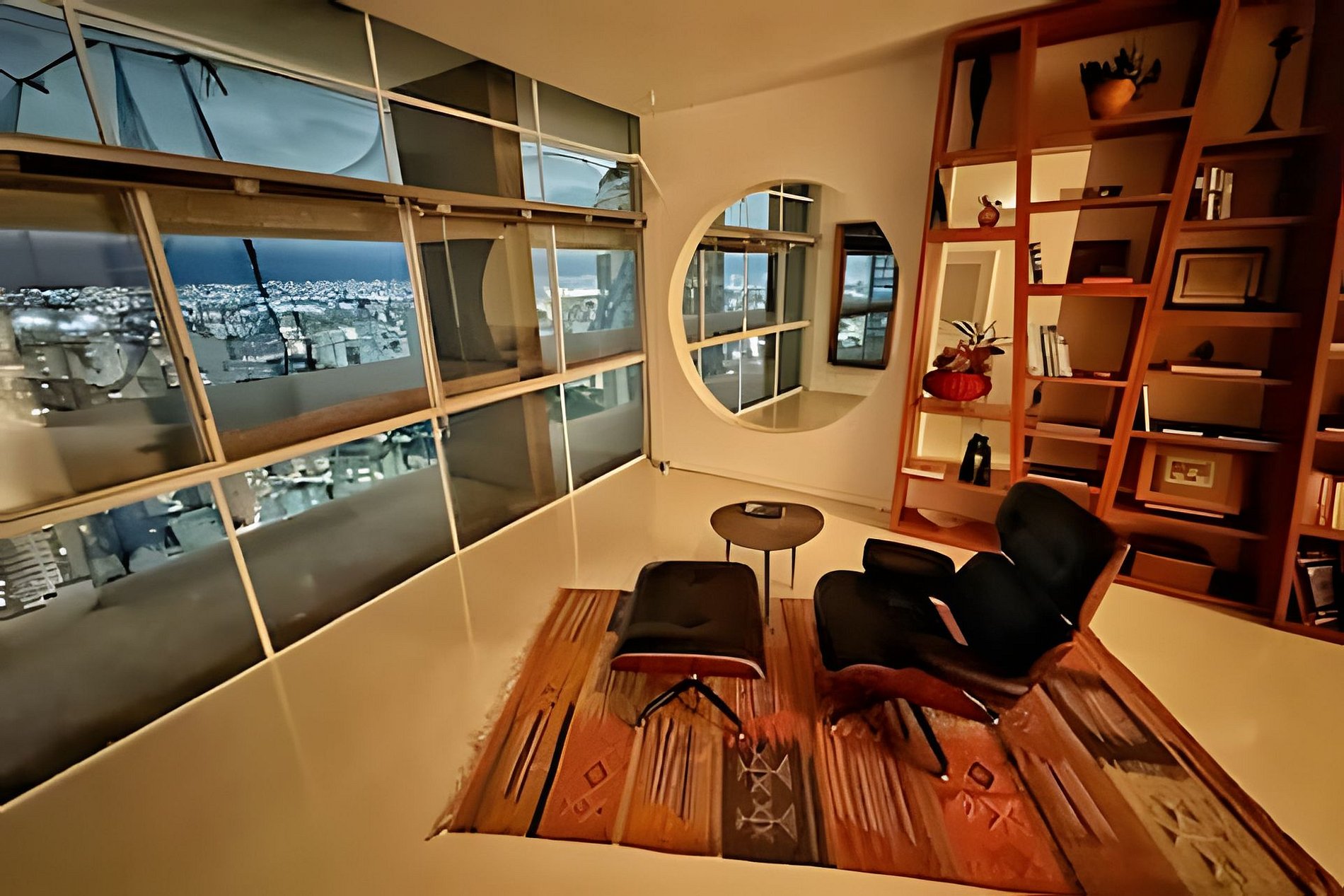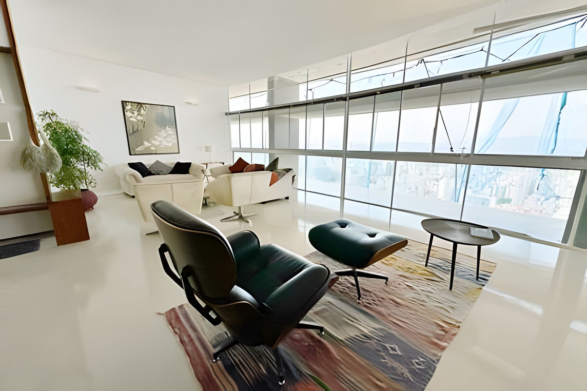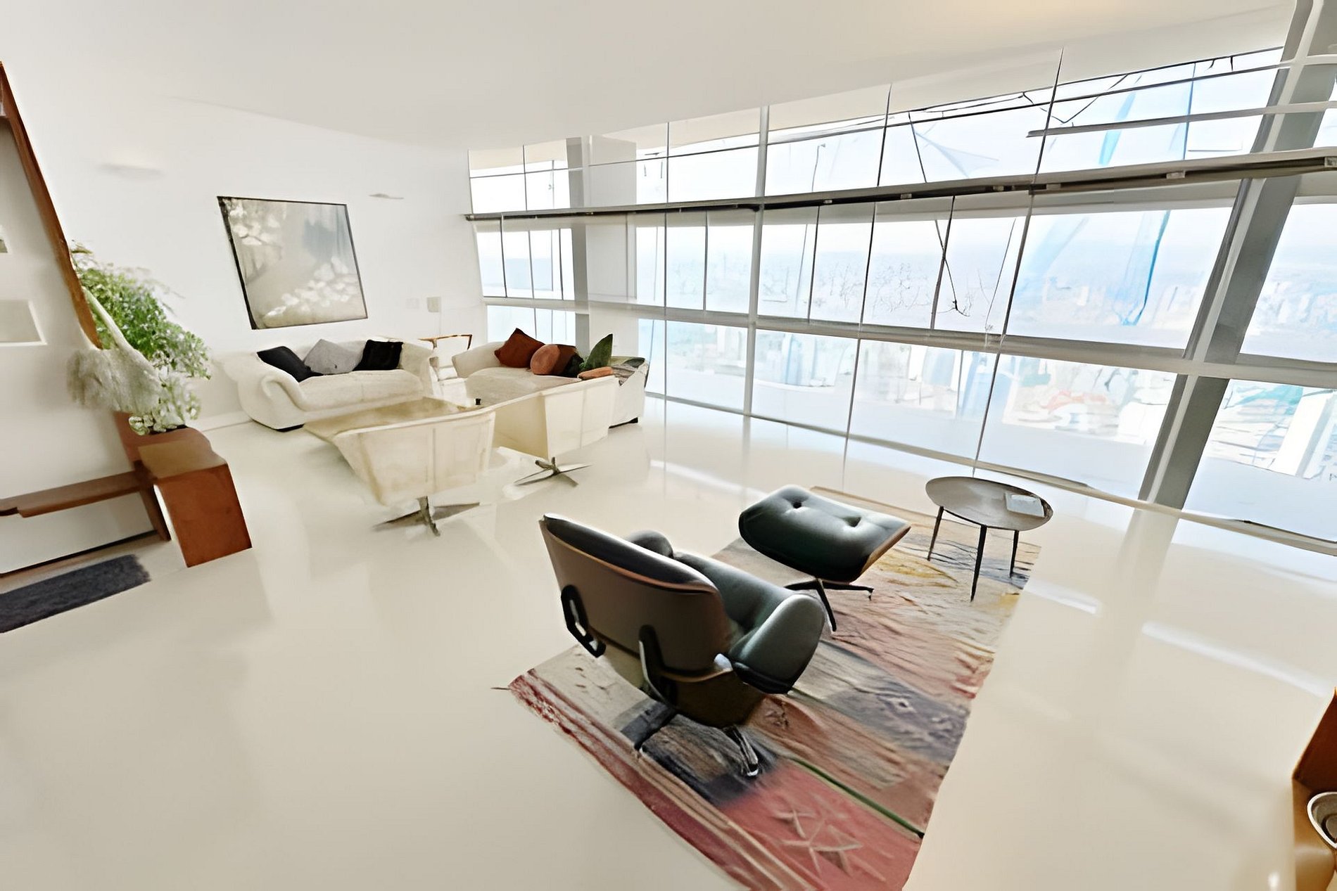 Este projeto do arquiteto alemão Walter Faigle, aluno da lendária Ulm Design School na década de 50, e que foi amigo pessoal dos proprietários, traduz para o ambiente do Copan elementos de sua genialidade. O apartamento, que está no último andar do edifício, traz o piso em revestimento monolítico branco, prolongando o horizonte da cidade para dentro de seus 180 m2. A maior planta do Edifício Copan, que foi redesenhada para dois espaçosos dormitórios e uma grande área de convívio.