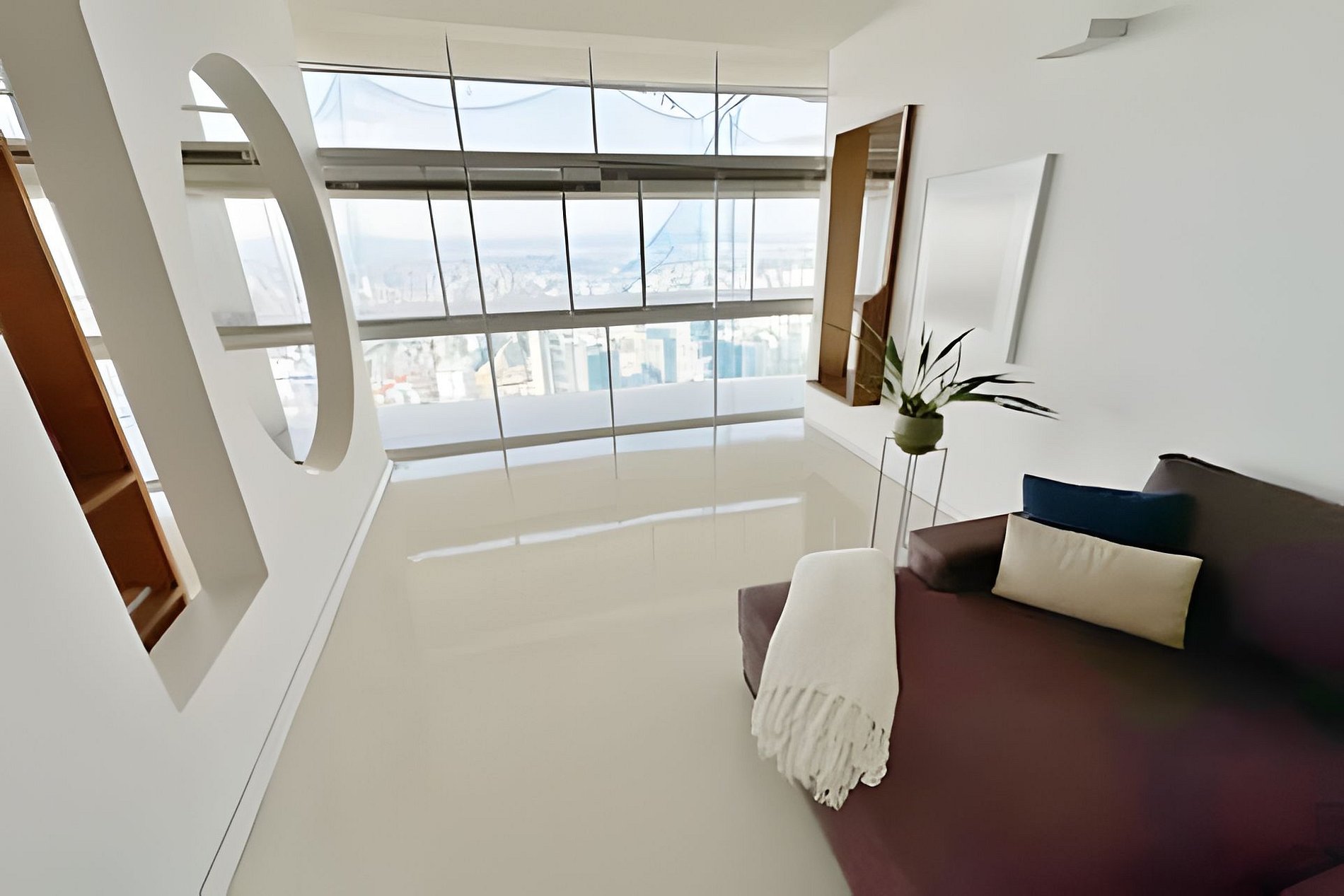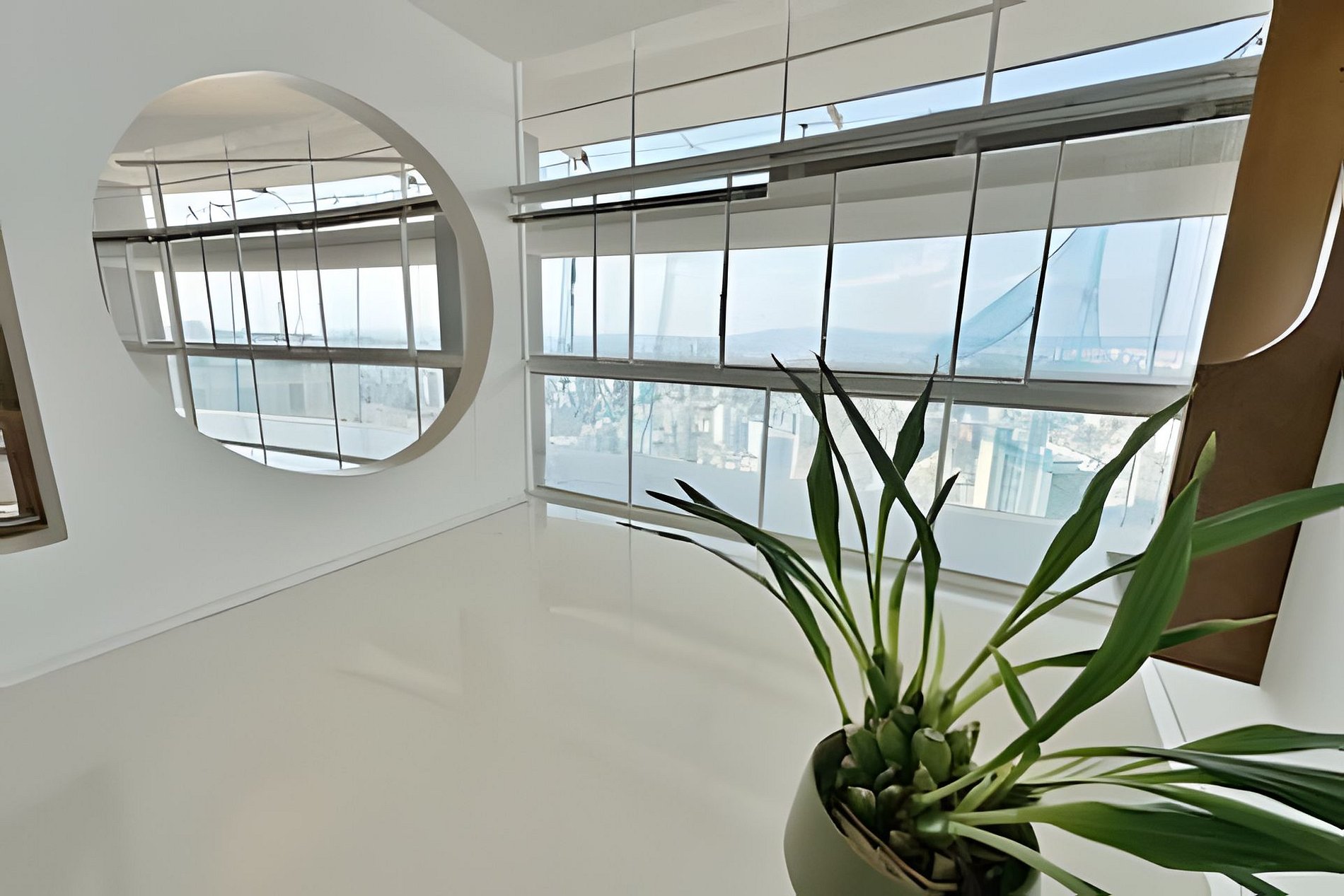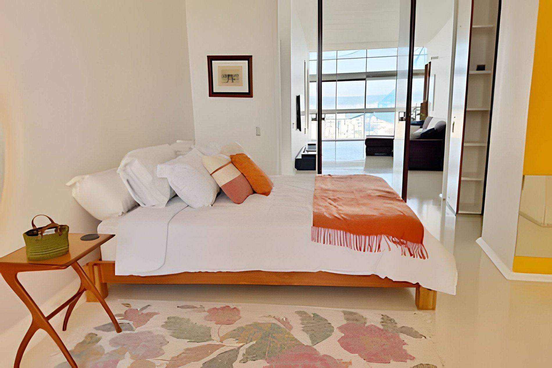 Este projeto do arquiteto alemão Walter Faigle, aluno da lendária Ulm Design School na década de 50, e que foi amigo pessoal dos proprietários, traduz para o ambiente do Copan elementos de sua genialidade. O apartamento, que está no último andar do edifício, traz o piso em revestimento monolítico branco, prolongando o horizonte da cidade para dentro de seus 180 m2. A maior planta do Edifício Copan, que foi redesenhada para dois espaçosos dormitórios e uma grande área de convívio.