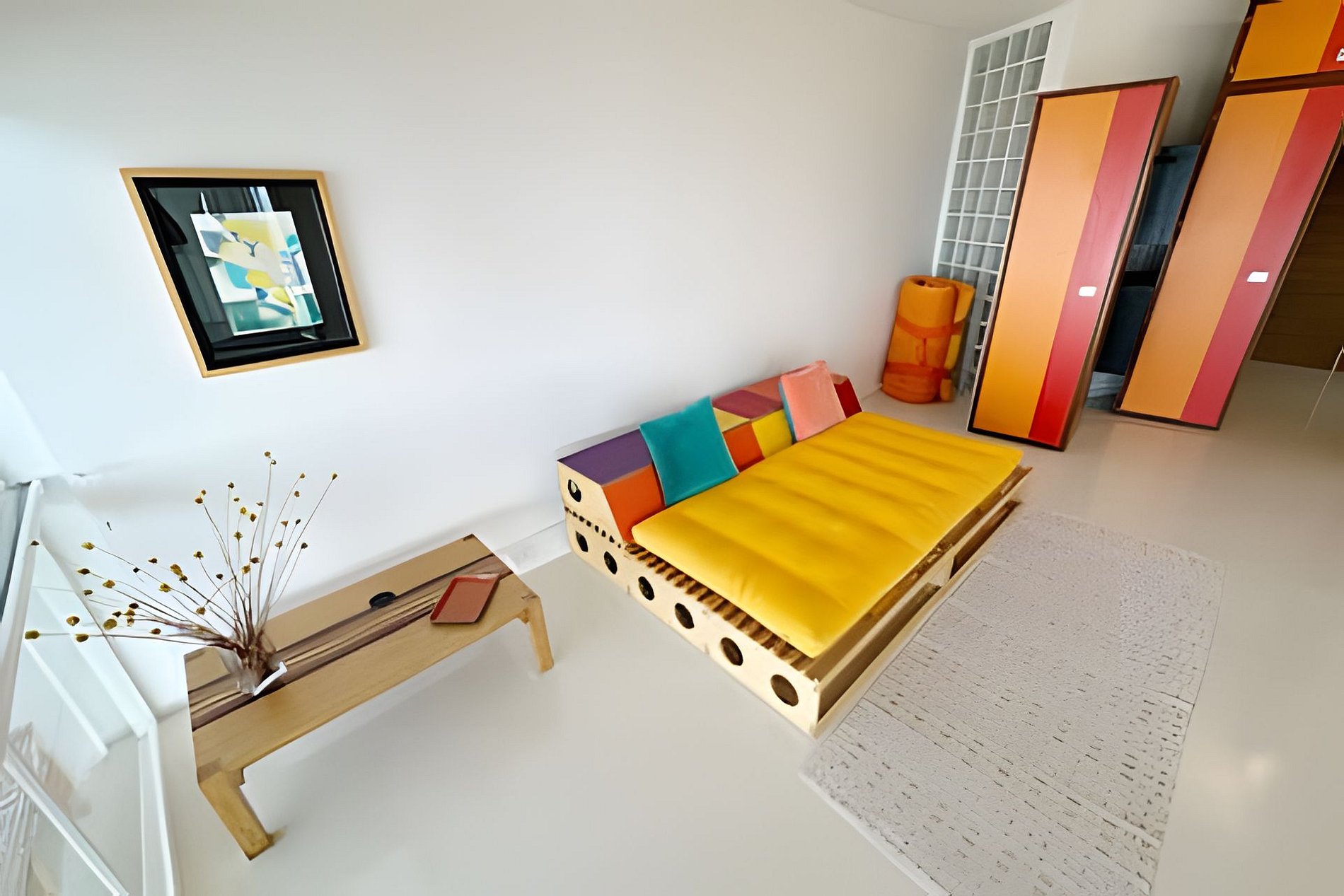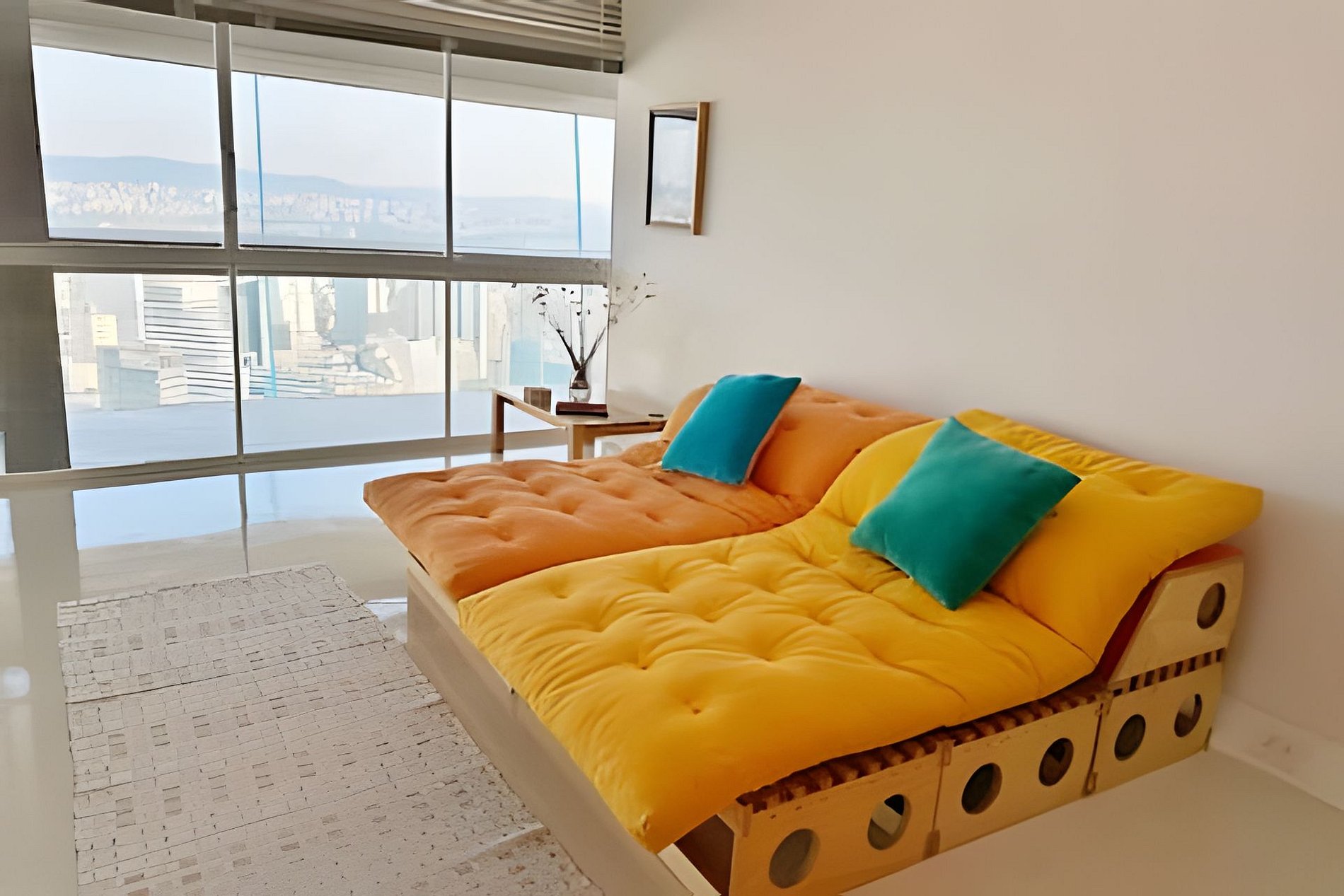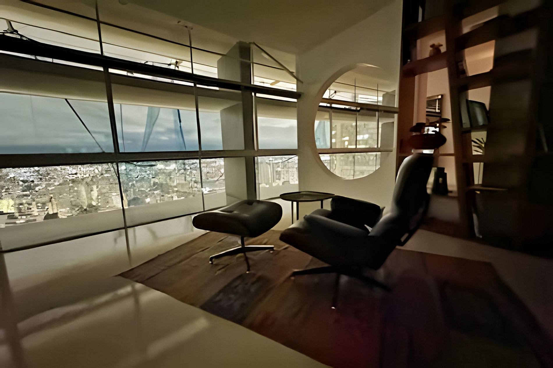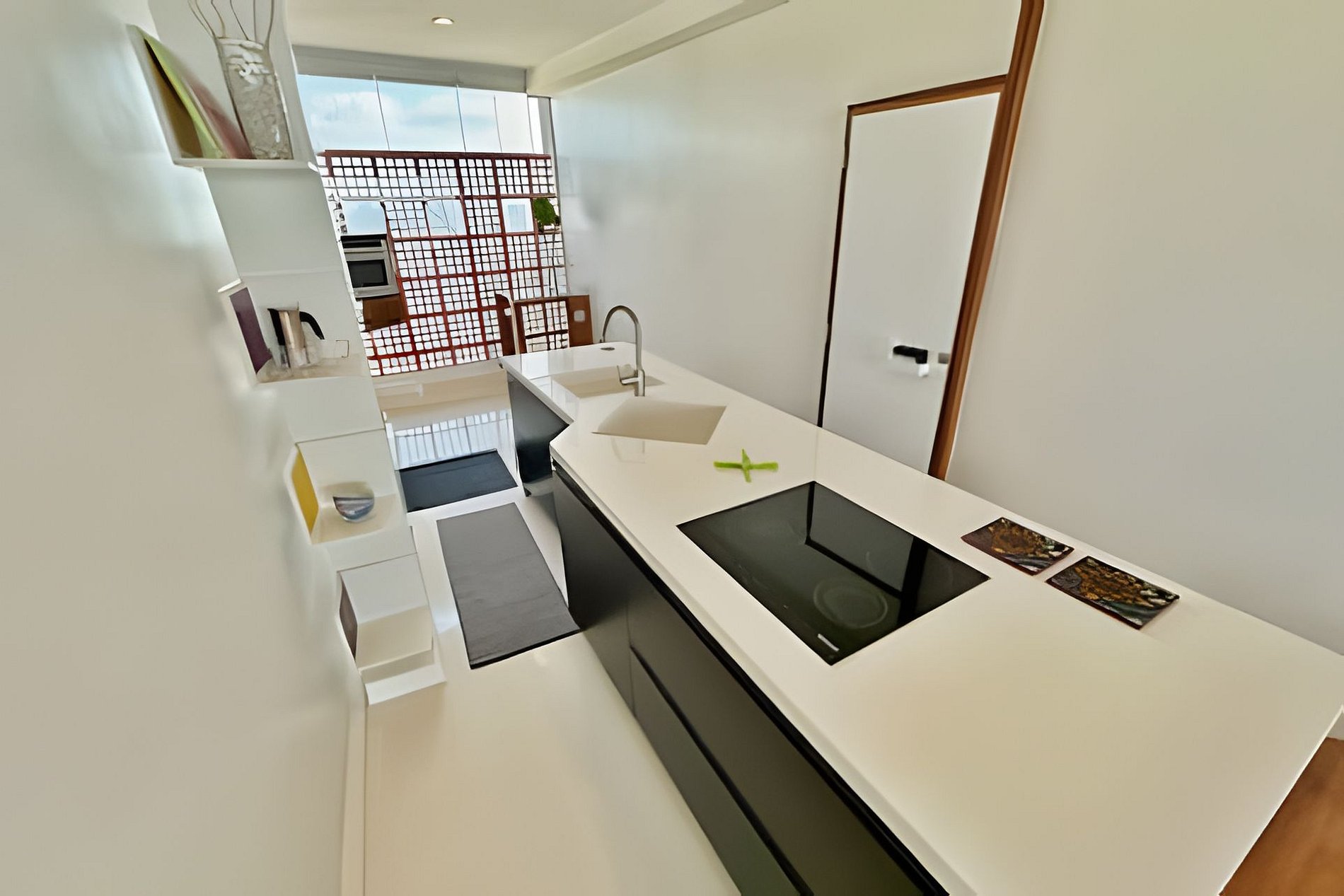 Este projeto do arquiteto alemão Walter Faigle, aluno da lendária Ulm Design School na década de 50, e que foi amigo pessoal dos proprietários, traduz para o ambiente do Copan elementos de sua genialidade. O apartamento, que está no último andar do edifício, traz o piso em revestimento monolítico branco, prolongando o horizonte da cidade para dentro de seus 180 m2. A maior planta do Edifício Copan, que foi redesenhada para dois espaçosos dormitórios e uma grande área de convívio.