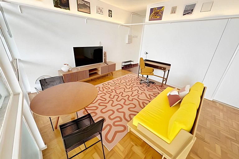 Hospede-se no Edifício Copan, um dos mais importantes prédios de São Paulo, e tenha acesso fácil a dezenas de excelentes restaurantes, bares, museus, teatros e shopping centers. Este apartamento é sua base ideal para explorar o Centro de São Paulo com estilo. Projetado por um casal de artistas plásticos, o studio é repleto de obras de arte e tem um design realmente surpreendente. Venha conhecer e se encantar com este apartamento.