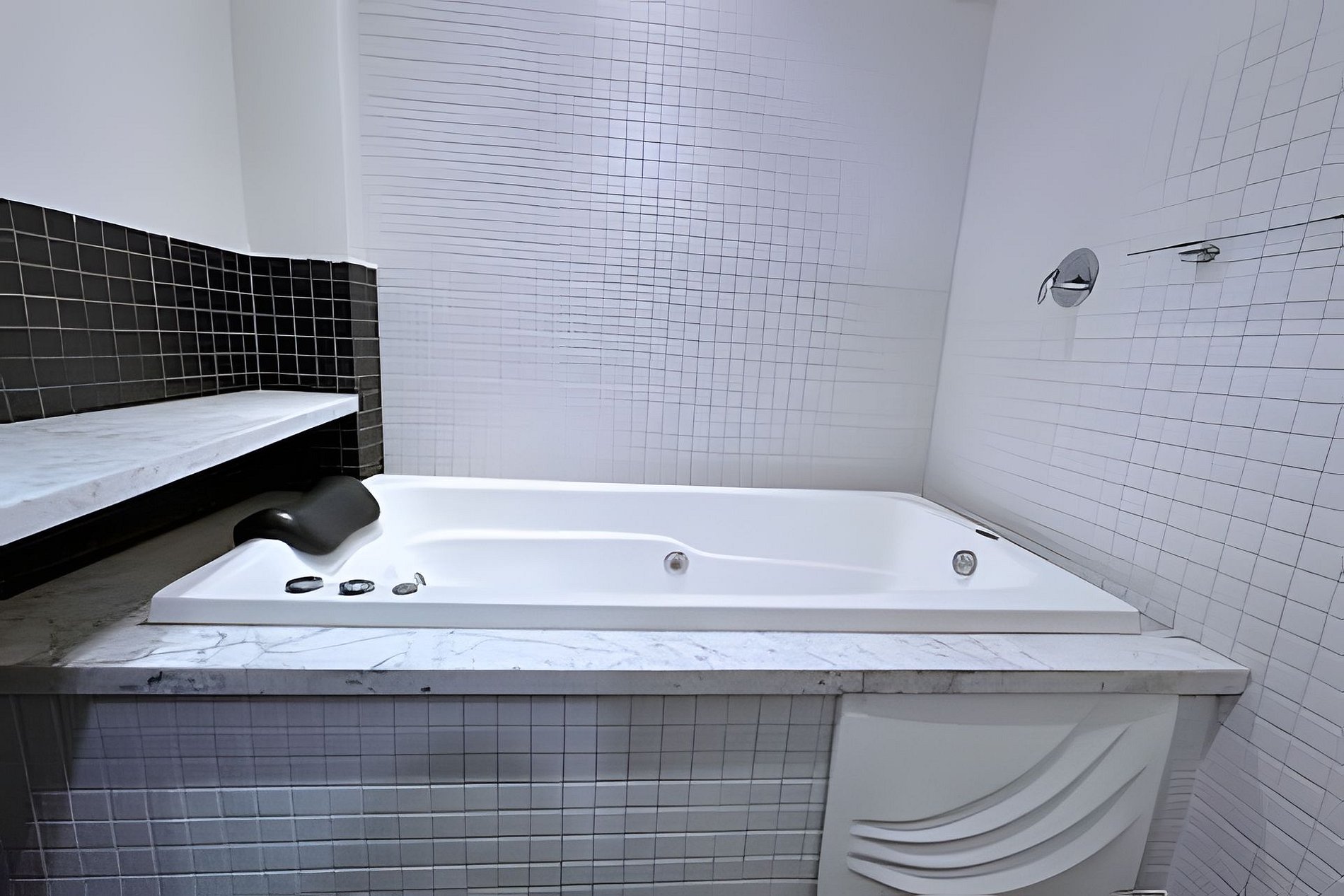 === Importante notar que a banheira que aparece nas fotos é uma banheira de imersão. O sistema de hidromassagem não está funcionando atualmente.