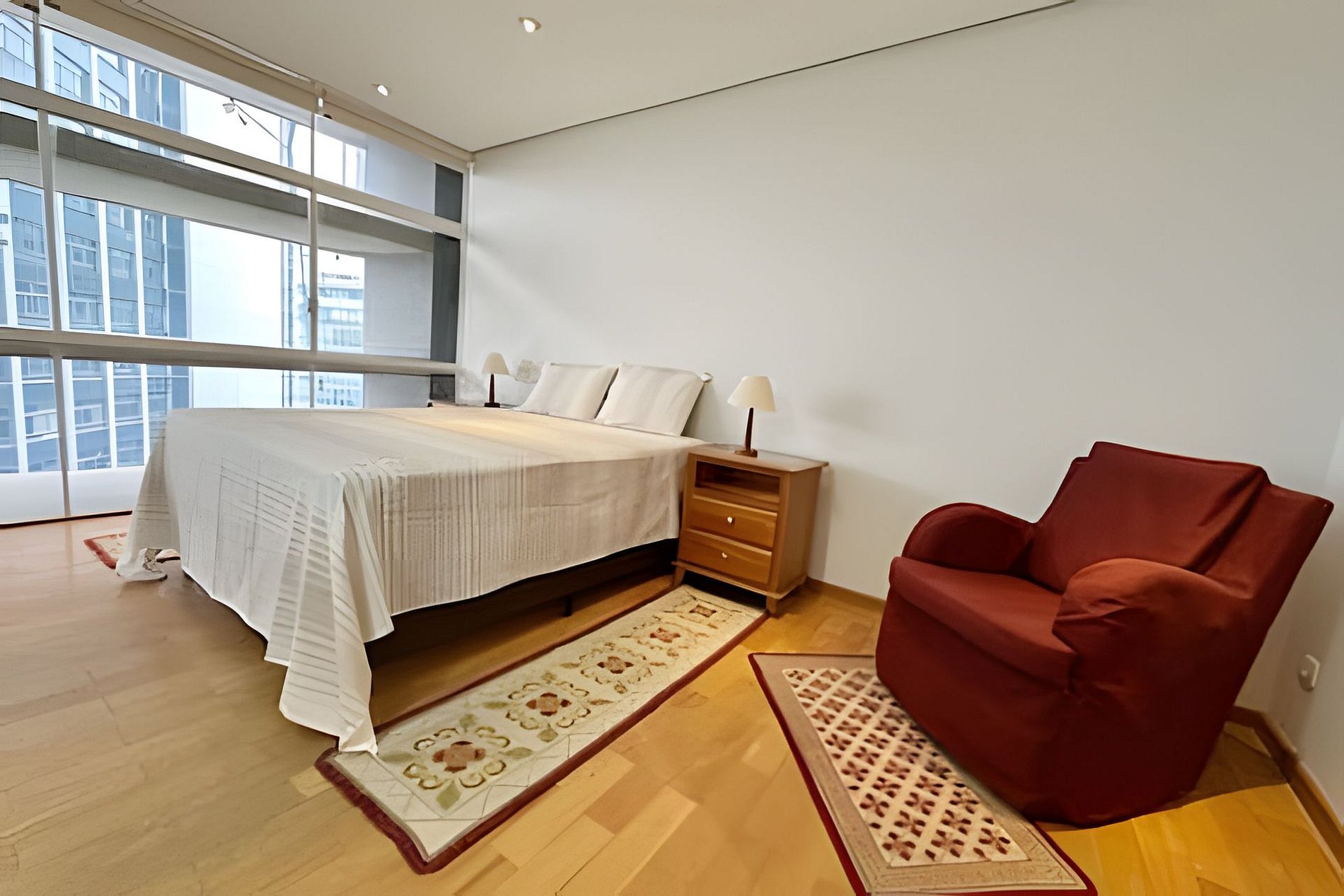 Hospede-se com sua família ou amigos no edifício residencial mais famoso do Brasil, o Copan. São 140m2 espaçosamente divididos em três dormitórios, sala de jantar, sala de estar, cozinha e varanda. Fique próximo aos principais restaurantes, bares, museus e teatros da cidade de São Paulo. Aproveite toda a infraestrutura de alimentação e serviços do próprio edifício, que inclui salões de beleza, livraria e muito mais.