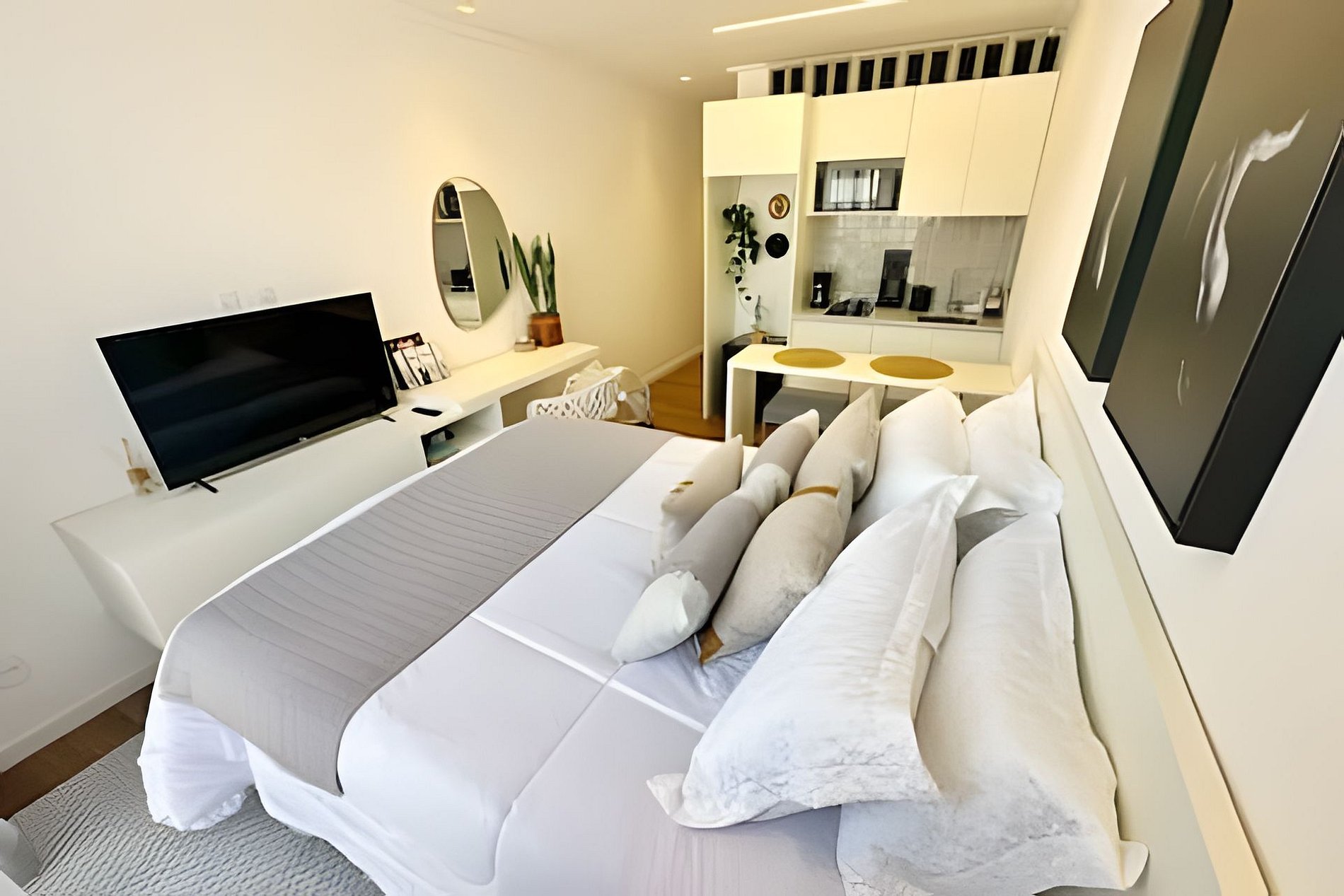 Hospede-se com conforto e segurança no edifício residencial mais famoso do Brasil, o Copan. Esteja perto dos melhores bares e restaurantes da cidade e viva o dia-a-dia de uma verdadeira cidade vertical com mais de cinco mil moradores. A estrutura de serviços do condomínio inclui além de restaurantes, salões de beleza, studios de Pilates, lojas e muito mais.