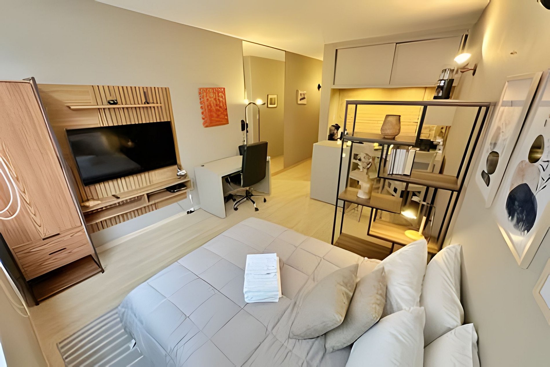 Hospede-se no iconico predio do Oscar Nimayer num aconchegante estúdio de inspiração Zen. A 5mn a pé da estação do metro República, o espaco garante noites tranquilas ao meio do coração vibrante de São Paulo. Ideal para quem quer recarregar as energias e desfrutar da cidade.