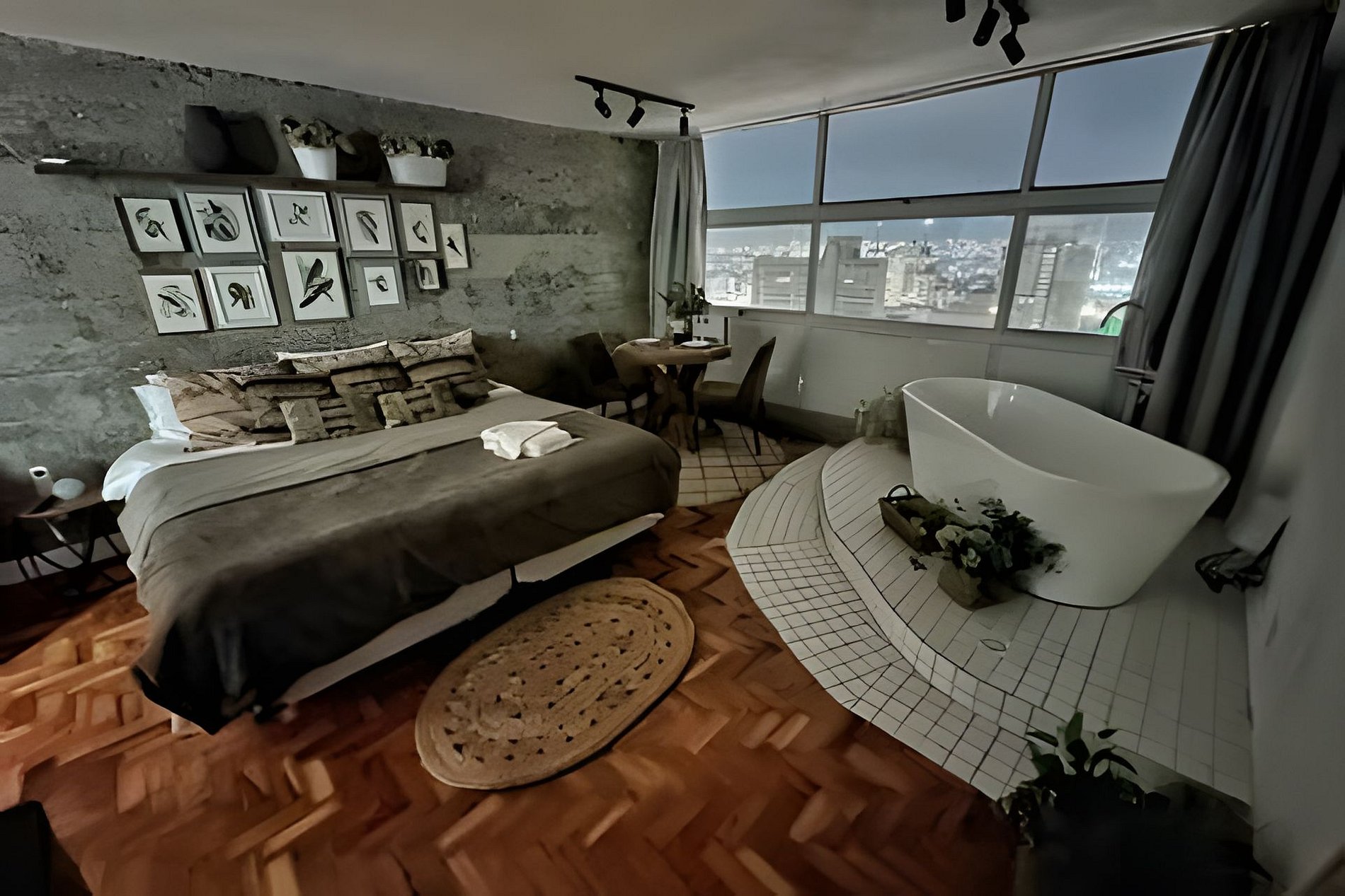 Viva uma experiência única em pleno Mirante do Vale! Apartamento aconchegante e cheio de estilo, com banheira voltada para janelas amplas e uma vista incrível do skyline de São Paulo. Decoração moderna com toques naturais, cama superconfortável e espaço perfeito para relaxar ou curtir a dois. Um verdadeiro refúgio urbano no coração da cidade, perto de bares, restaurantes e toda a vibração do centro.